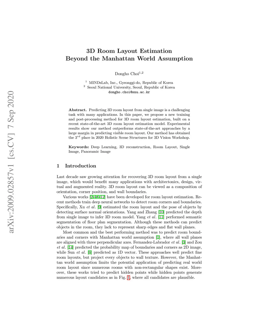 3D Room Layout Estimation Beyond the Manhattan World Assumption