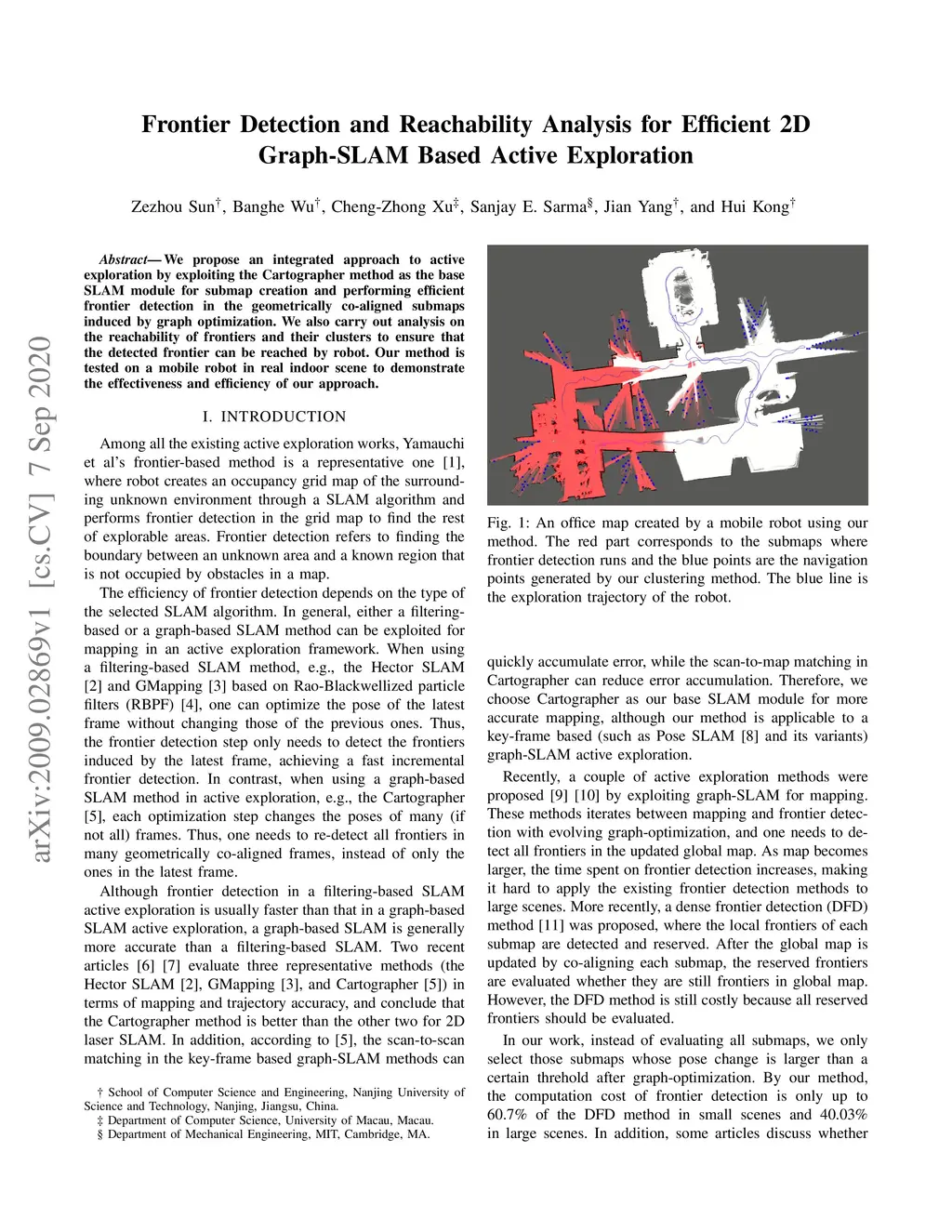 We propose an integrated approach to active exploration by exploiting the Cartographer method as the base SLAM module for submap creation and performing efficient frontier detection in the geometrically co-aligned submaps induced by graph optimization. We also carry out analysis on the reachability of frontiers and their clusters to ensure that the detected frontier can be reached by robot. Our method is tested on a mobile robot in real indoor scene to demonstrate the effectiveness and efficiency of our approach.