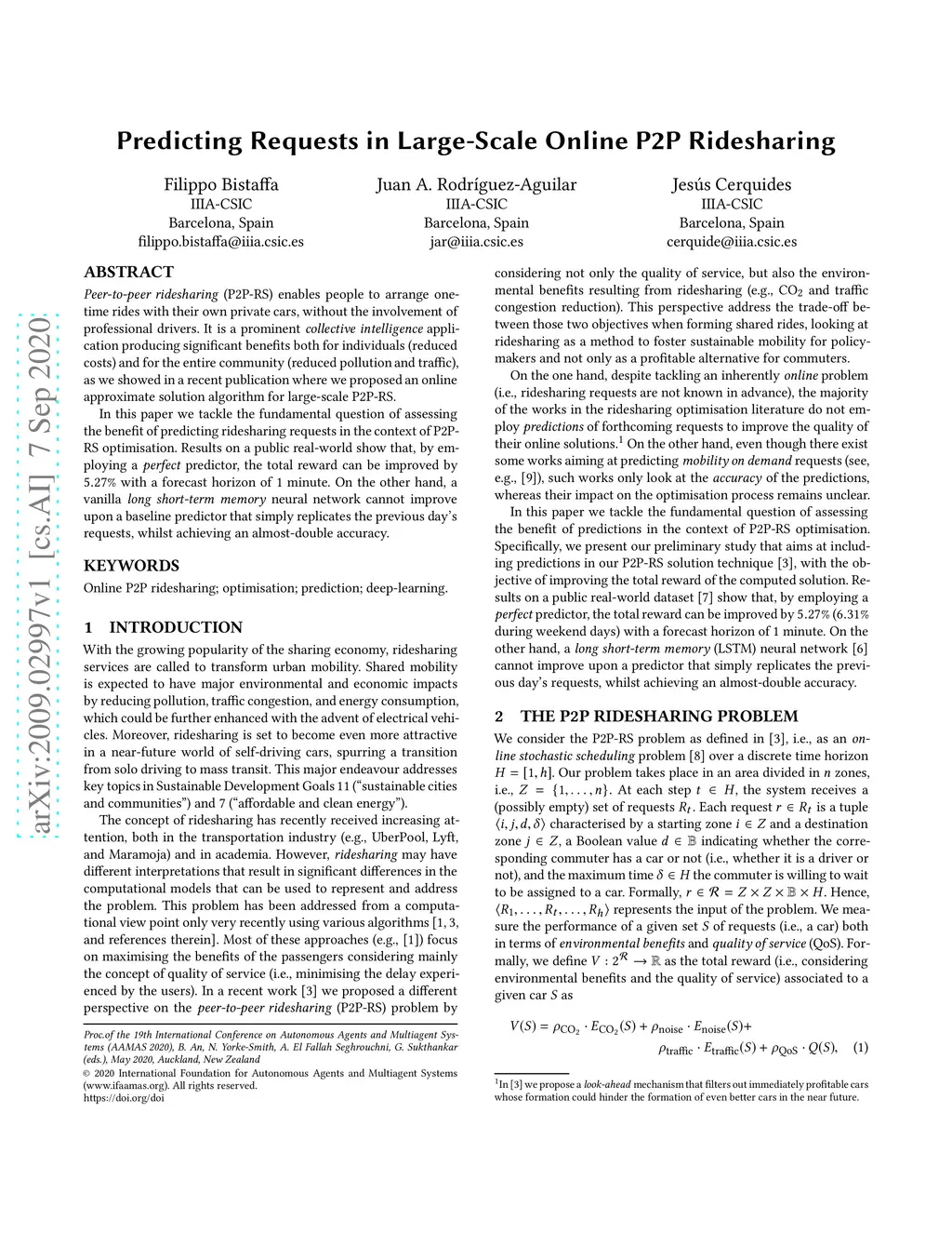 Predicting Requests in Large-Scale Online P2P Ridesharing