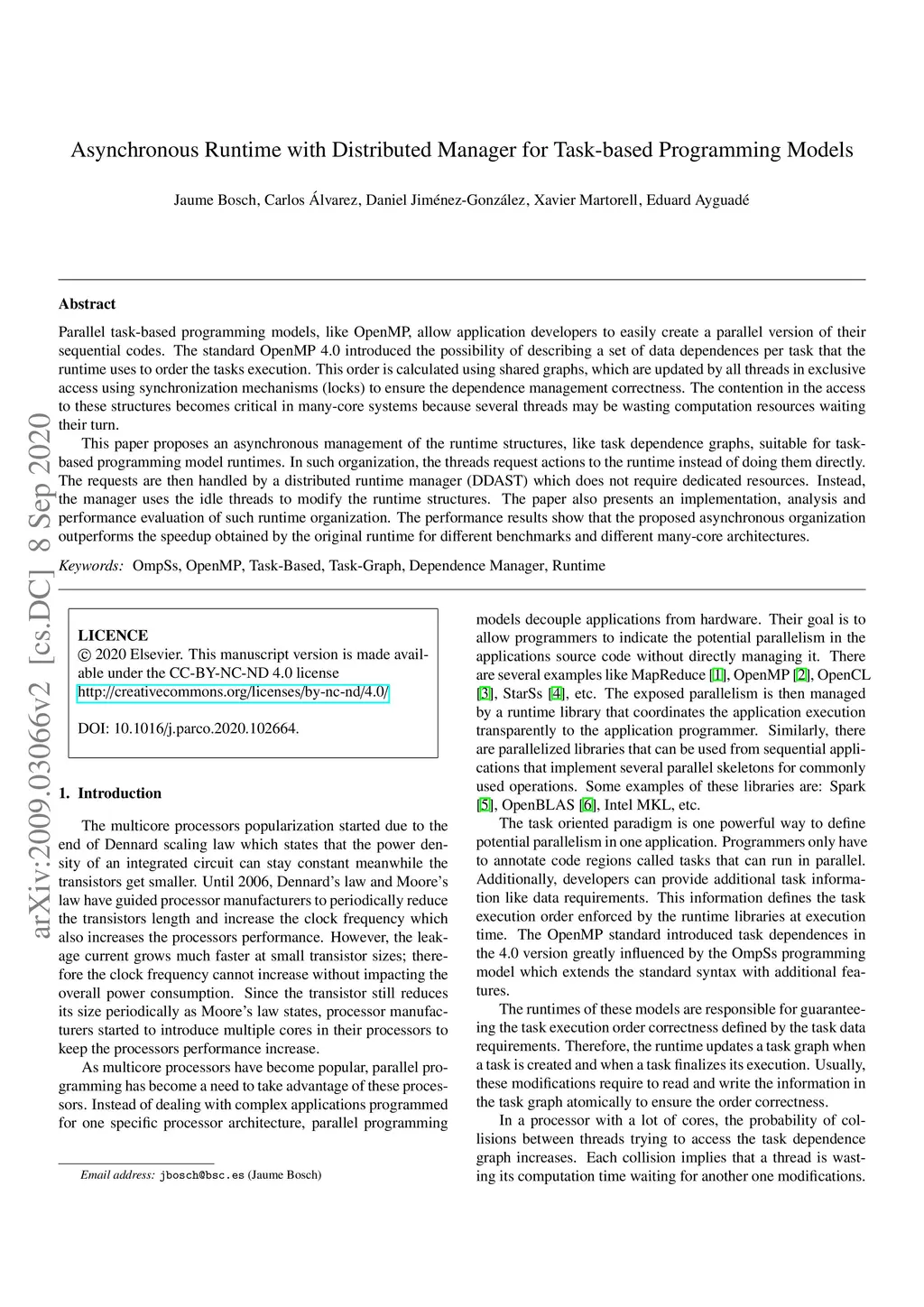 Asynchronous Runtime with Distributed Manager for Task-based Programming