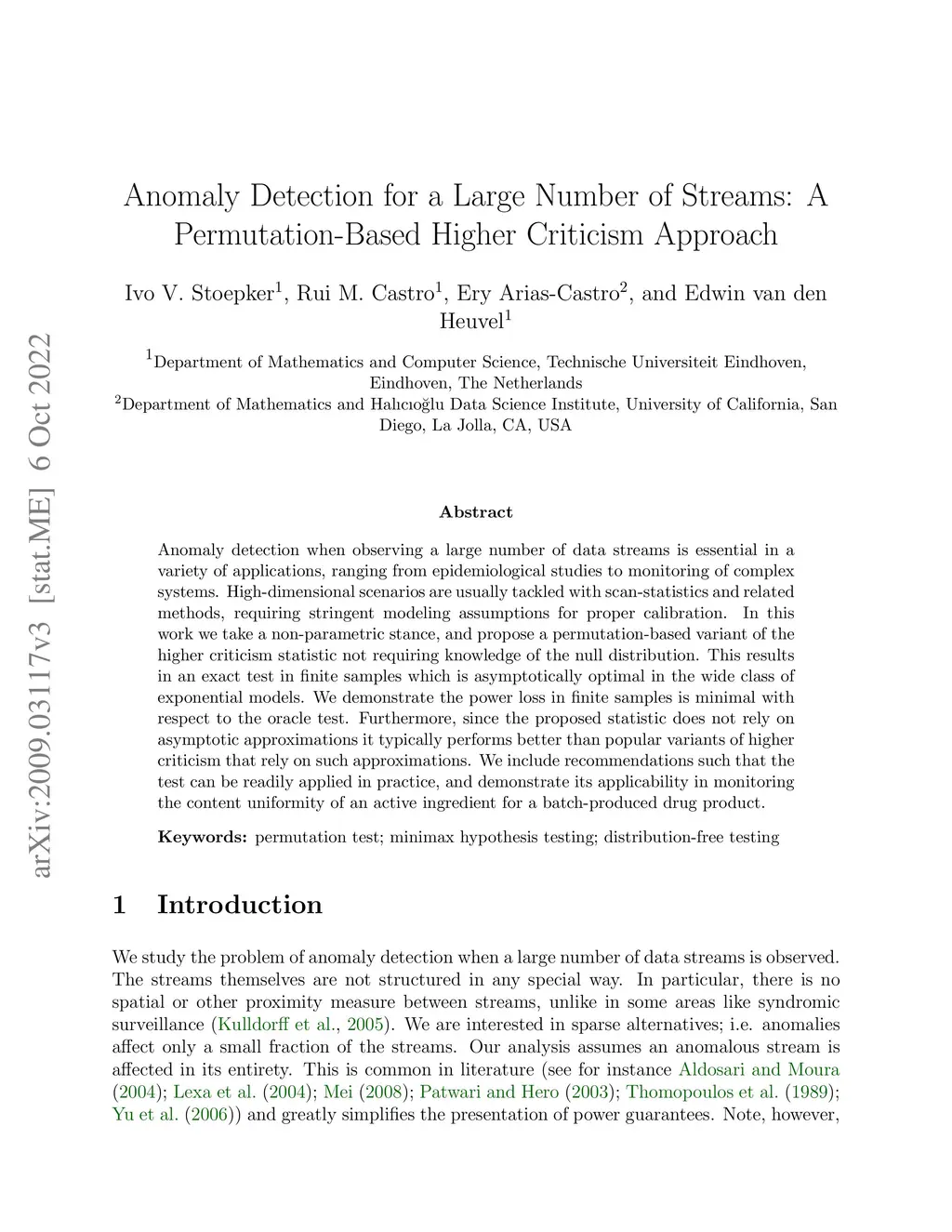 Anomaly Detection for a Large Number of Streams: A Permutation-Based