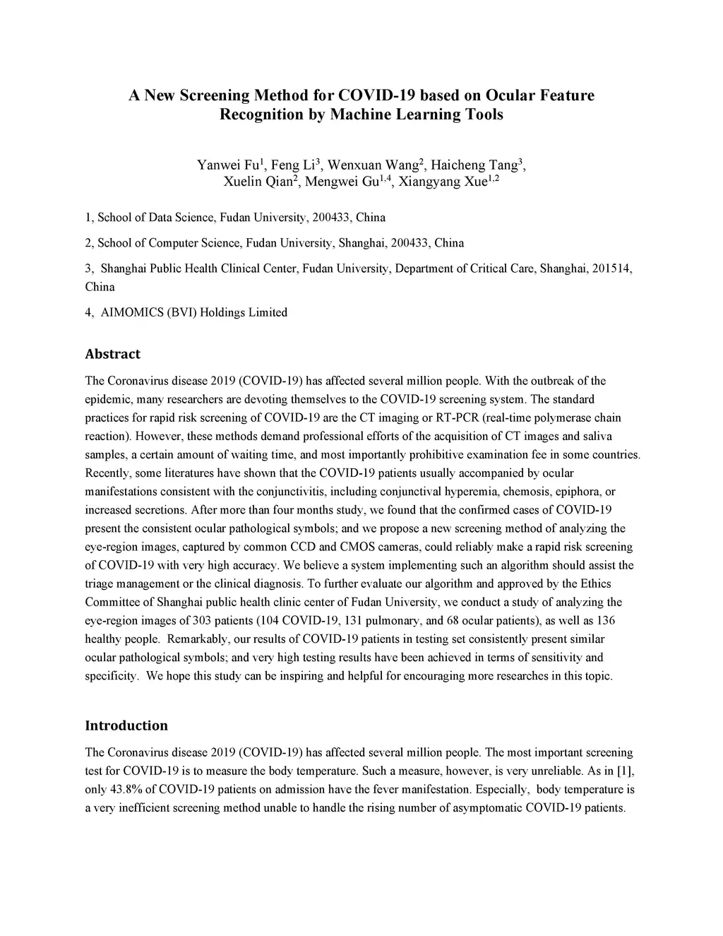 A New Screening Method for COVID-19 based on Ocular Feature Recognition