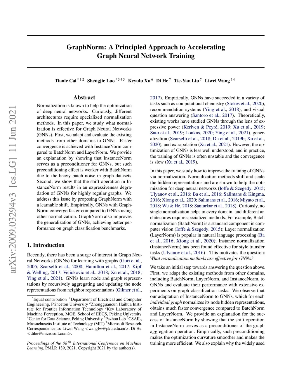 GraphNorm: A Principled Approach to Accelerating Graph Neural Network