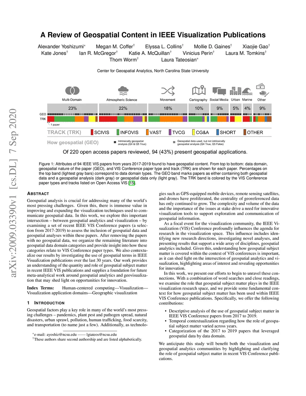 A Review of Geospatial Content in IEEE Visualization Publications