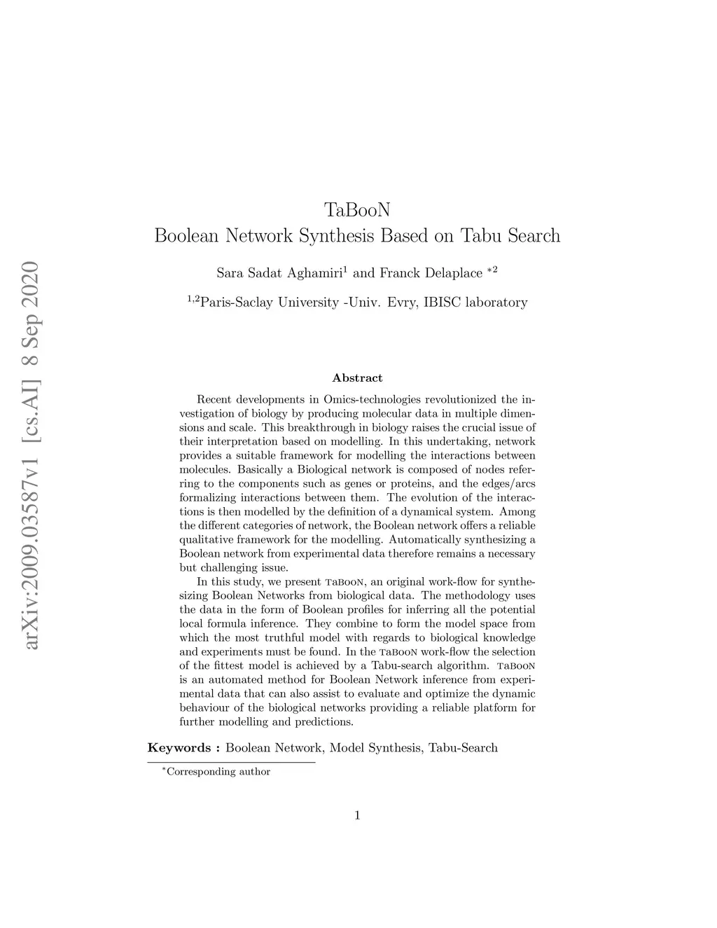 Recent developments in Omics-technologies revolutionized the investigation of biology by producing molecular data in multiple dimensions and scale. This breakthrough in biology raises the crucial issue of their interpretation based on modelling. In this undertaking, network provides a suitable framework for modelling the interactions between molecules. Basically a Biological network is composed of nodes referring to the components such as genes or proteins, and the edges/arcs formalizing interactions between them. The evolution of the interactions is then modelled by the definition of a dynamical system. Among the different categories of network, the Boolean network offers a reliable qualitative framework for the modelling. Automatically synthesizing a Boolean network from experimental data therefore remains a necessary but challenging issue. In this study, we present taboon, an original work-flow for synthesizing Boolean Networks from biological data. The methodology uses the data in the form of Boolean profiles for inferring all the potential local formula inference. They combine to form the model space from which the most truthful model with regards to biological knowledge and experiments must be found. In the taboon work-flow the selection of the fittest model is achieved by a Tabu-search algorithm. taboon is an automated method for Boolean Network inference from experimental data that can also assist to evaluate and optimize the dynamic behaviour of the biological networks providing a reliable platform for further modelling and predictions.