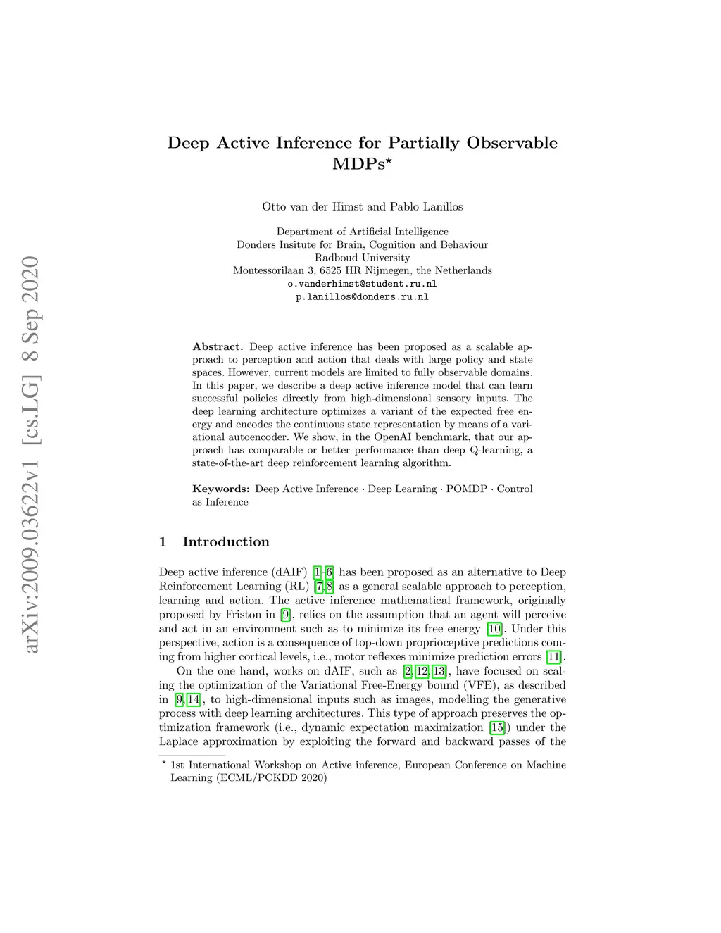 Deep Active Inference for Partially Observable MDPs