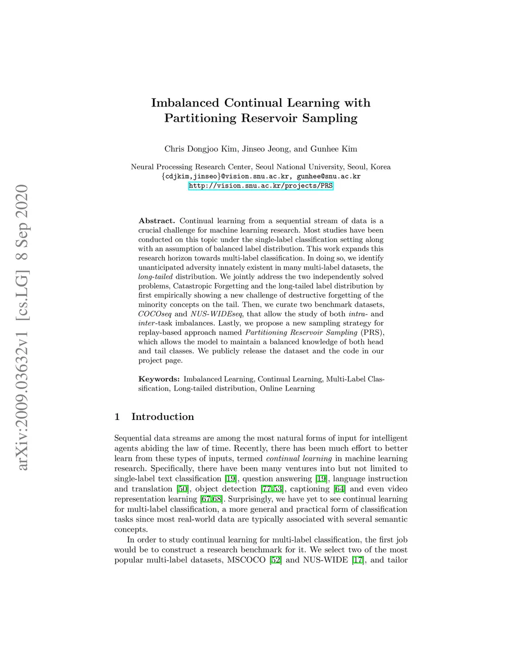 Imbalanced Continual Learning with Partitioning Reservoir Sampling