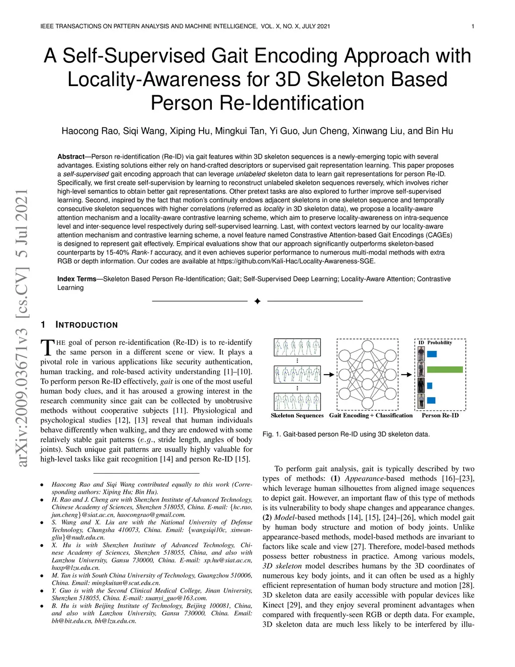 A Self-Supervised Gait Encoding Approach with Locality-Awareness for 3D