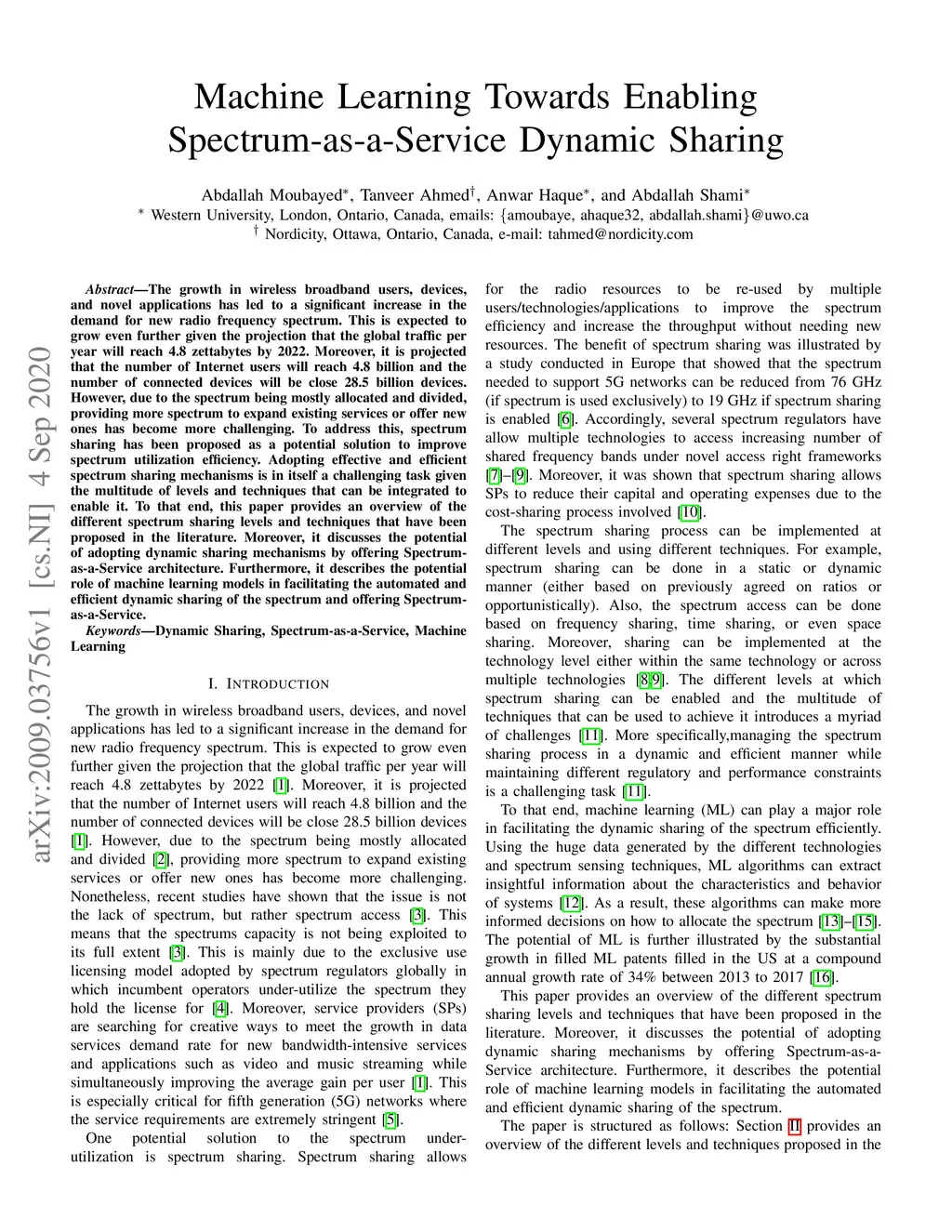 The growth in wireless broadband users, devices, and novel applications has led to a significant increase in the demand for new radio frequency spectrum. This is expected to grow even further given the projection that the global traffic per year will reach 4.8 zettabytes by 2022. Moreover, it is projected that the number of Internet users will reach 4.8 billion and the number of connected devices will be close 28.5 billion devices. However, due to the spectrum being mostly allocated and divided, providing more spectrum to expand existing services or offer new ones has become more challenging. To address this, spectrum sharing has been proposed as a potential solution to improve spectrum utilization efficiency. Adopting effective and efficient spectrum sharing mechanisms is in itself a challenging task given the multitude of levels and techniques that can be integrated to enable it. To that end, this paper provides an overview of the different spectrum sharing levels and techniques that have been proposed in the literature. Moreover, it discusses the potential of adopting dynamic sharing mechanisms by offering Spectrum-as-a-Service architecture. Furthermore, it describes the potential role of machine learning models in facilitating the automated and efficient dynamic sharing of the spectrum and offering Spectrum-as-a-Service.