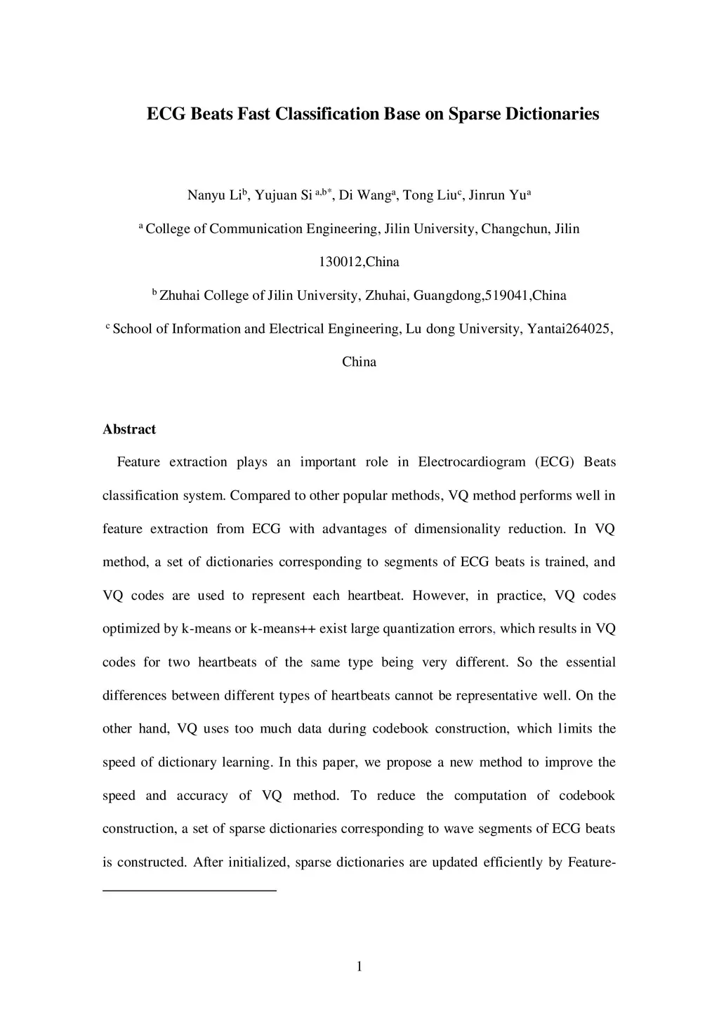 ECG Beats Fast Classification Base on Sparse Dictionaries