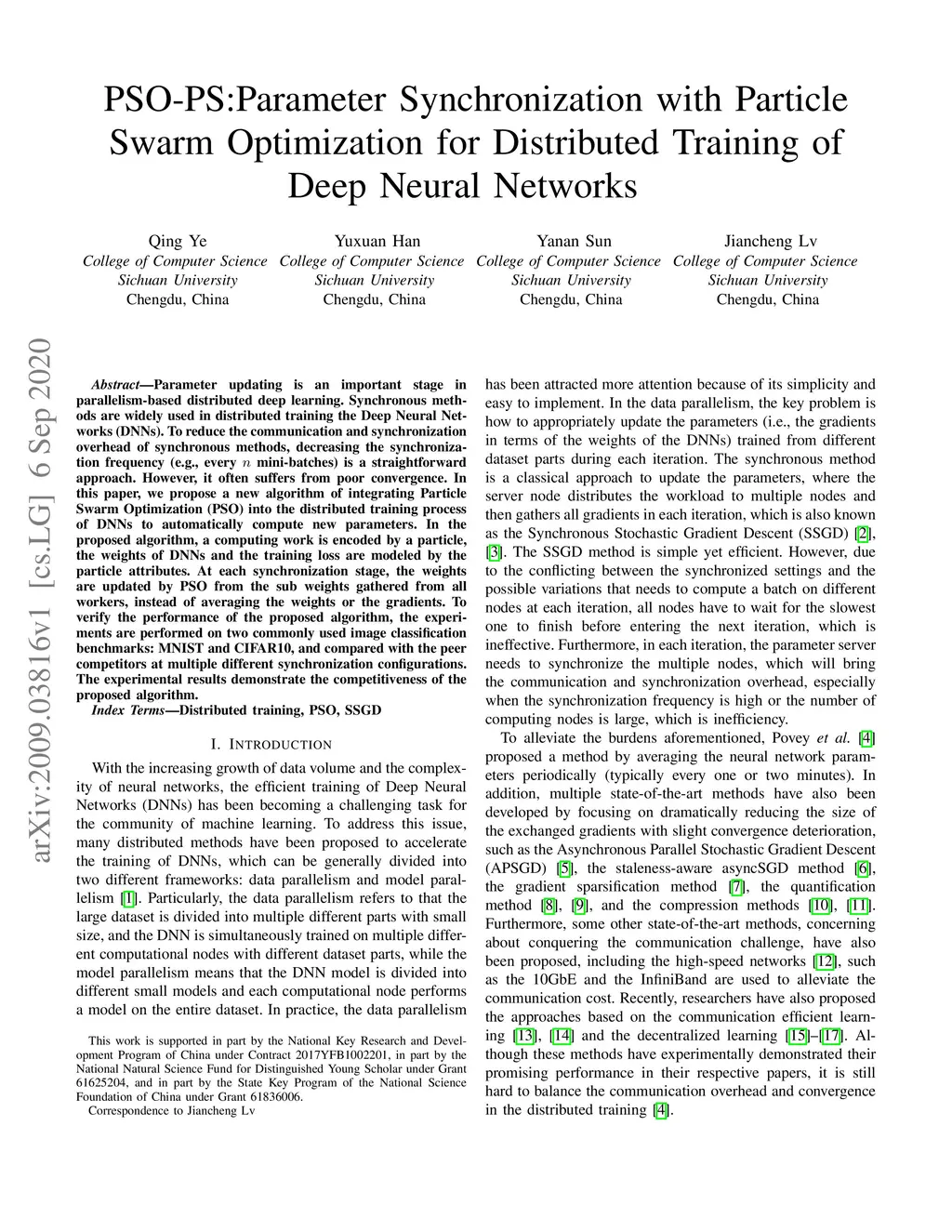 PSO-PS: Parameter Synchronization with Particle Swarm Optimization for