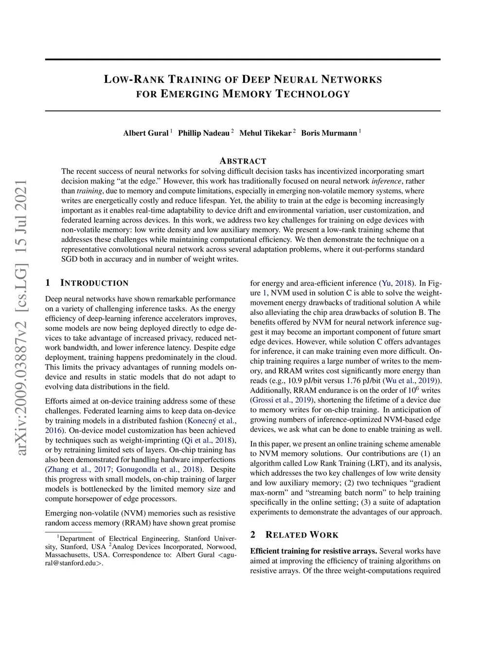 Low-Rank Training of Deep Neural Networks for Emerging Memory Technology