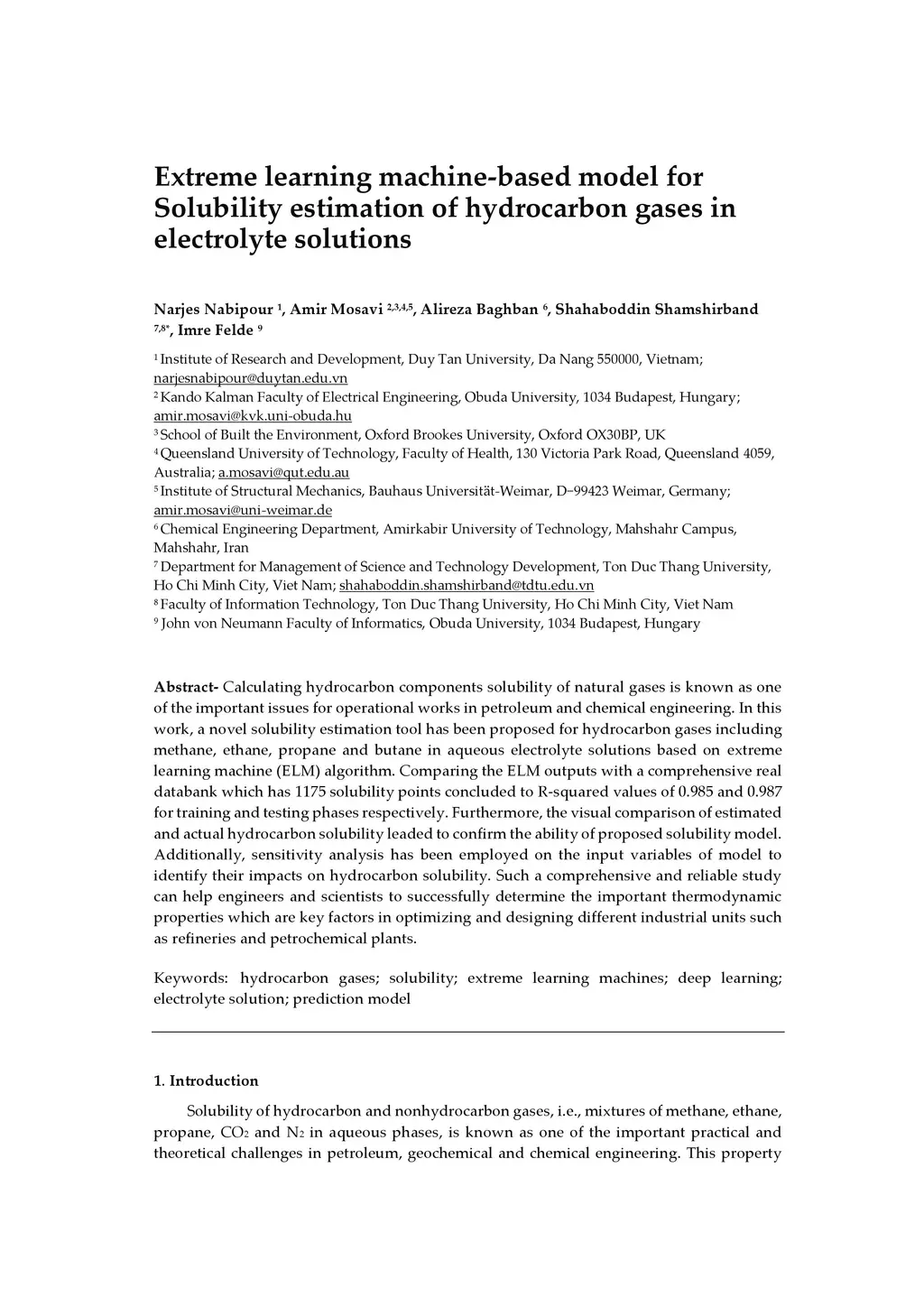 Extreme learning machine-based model for Solubility estimation of