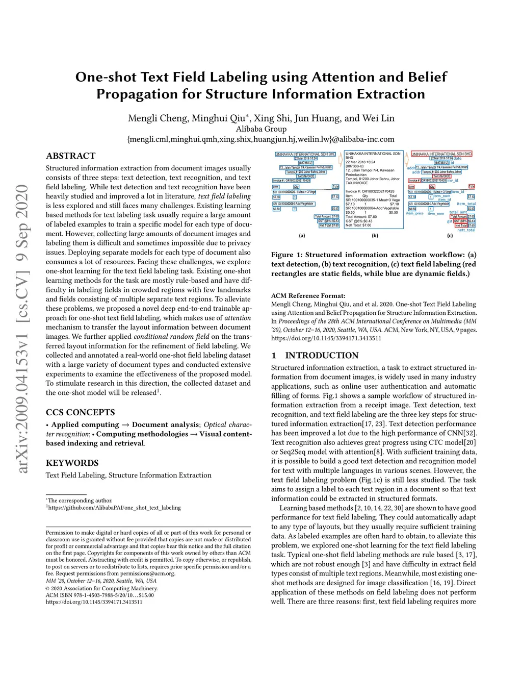 One-shot Text Field Labeling using Attention and Belief Propagation for