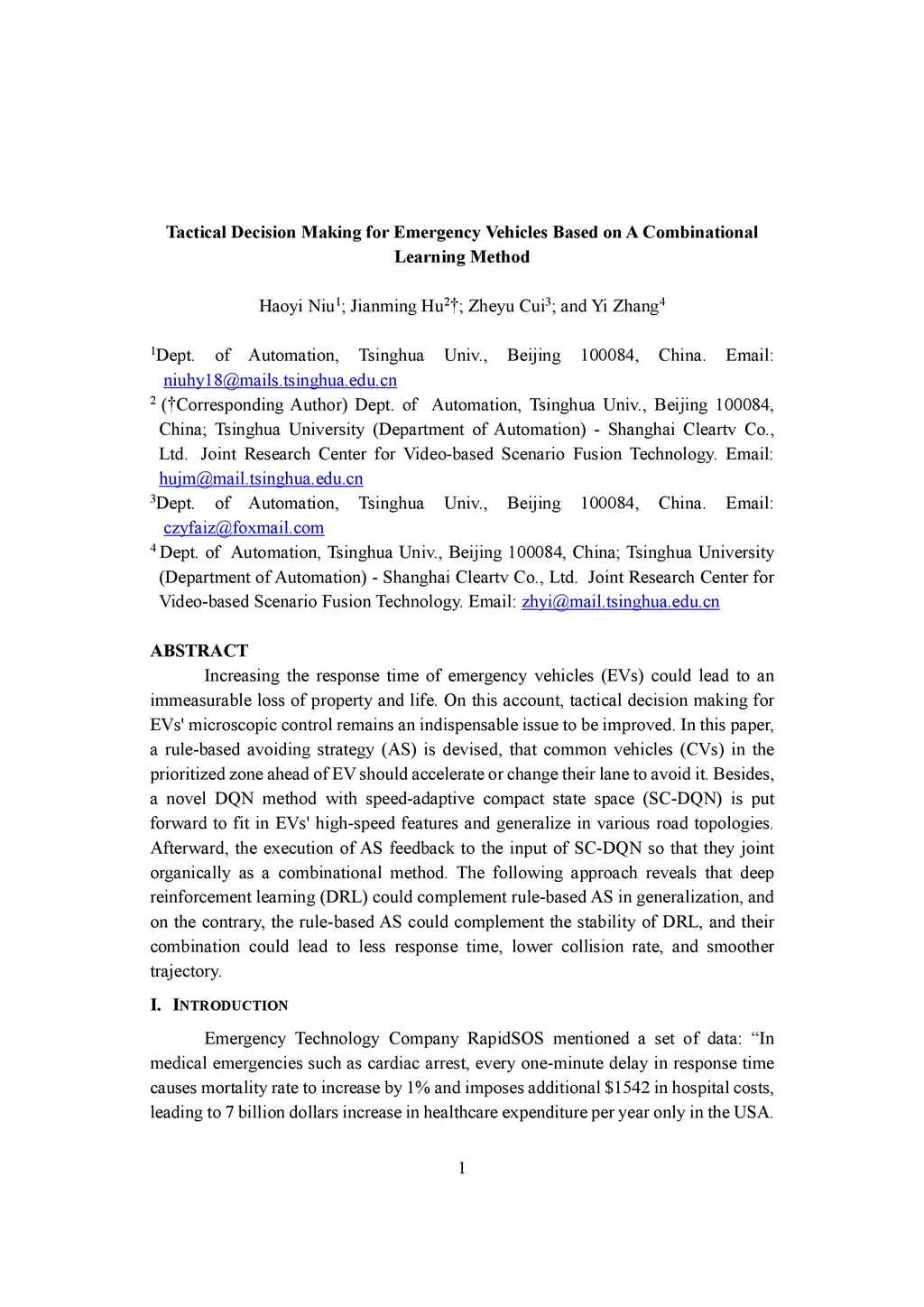 Tactical Decision Making for Emergency Vehicles Based on A Combinational