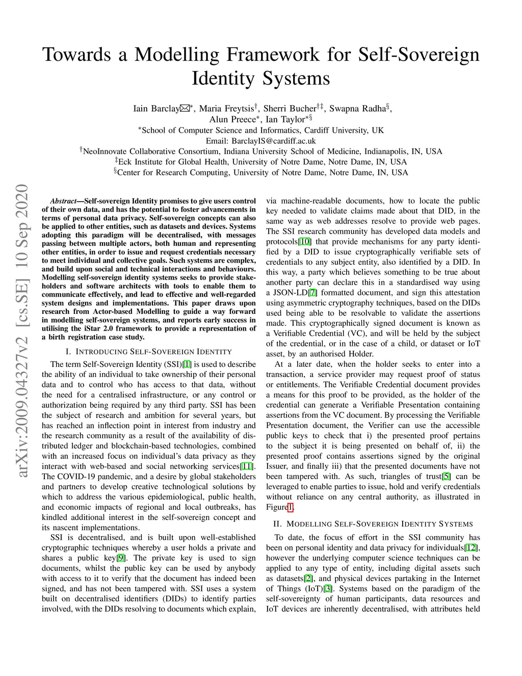 Towards a Modelling Framework for Self-Sovereign Identity Systems