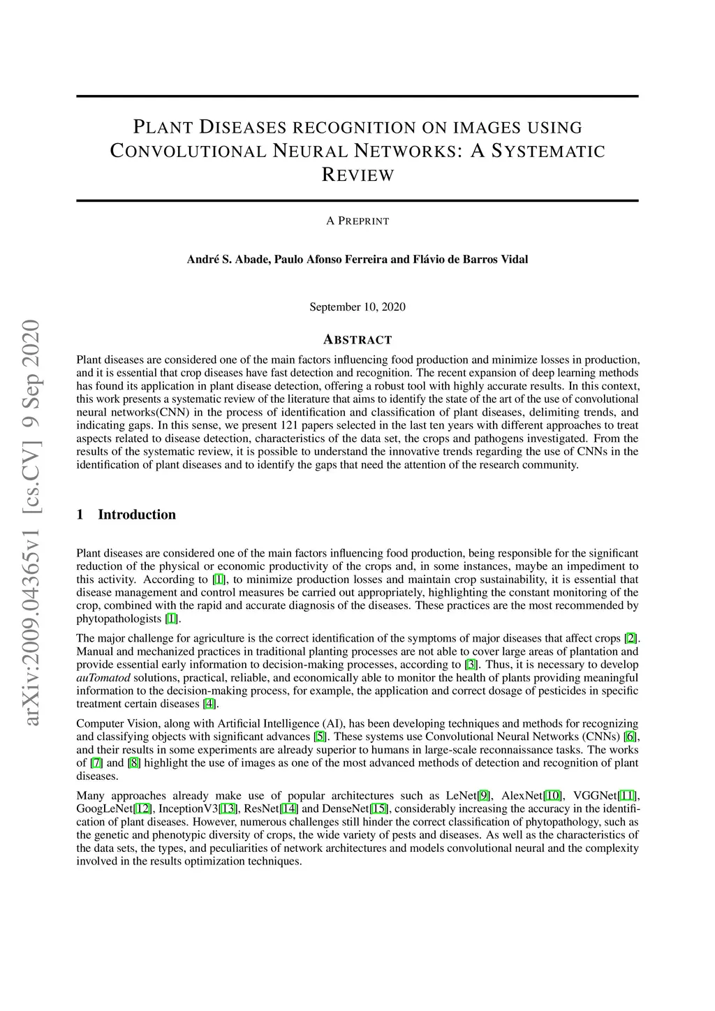 Plant diseases are considered one of the main factors influencing food production and minimize losses in production, and it is essential that crop diseases have fast detection and recognition. The recent expansion of deep learning methods has found its application in plant disease detection, offering a robust tool with highly accurate results. In this context, this work presents a systematic review of the literature that aims to identify the state of the art of the use of convolutional neural networks(CNN) in the process of identification and classification of plant diseases, delimiting trends, and indicating gaps. In this sense, we present 121 papers selected in the last ten years with different approaches to treat aspects related to disease detection, characteristics of the data set, the crops and pathogens investigated. From the results of the systematic review, it is possible to understand the innovative trends regarding the use of CNNs in the identification of plant diseases and to identify the gaps that need the attention of the research community.