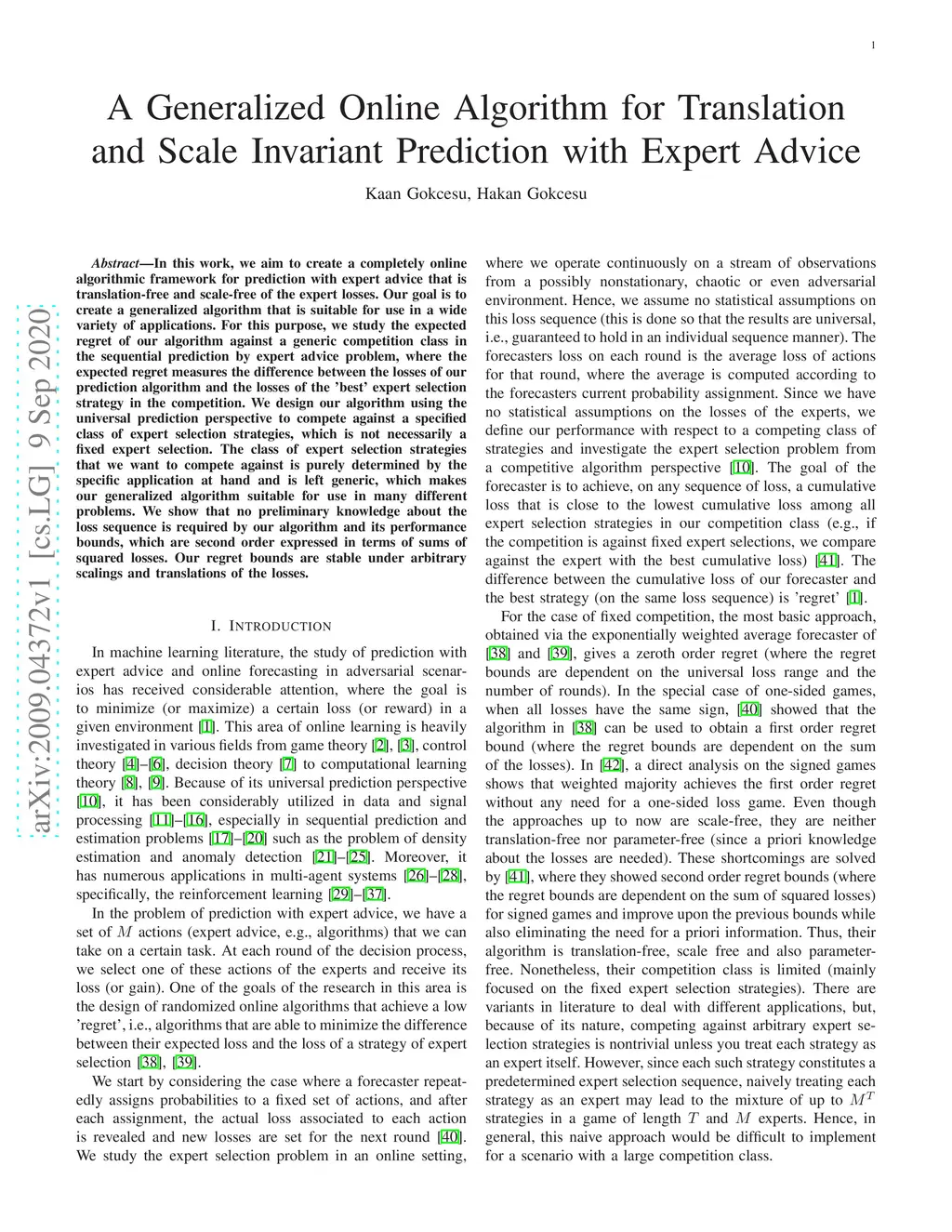 In this work, we aim to create a completely online algorithmic framework for prediction with expert advice that is translation-free and scale-free of the expert losses. Our goal is to create a generalized algorithm that is suitable for use in a wide variety of applications. For this purpose, we study the expected regret of our algorithm against a generic competition class in the sequential prediction by expert advice problem, where the expected regret measures the difference between the losses of our prediction algorithm and the losses of the 'best' expert selection strategy in the competition. We design our algorithm using the universal prediction perspective to compete against a specified class of expert selection strategies, which is not necessarily a fixed expert selection. The class of expert selection strategies that we want to compete against is purely determined by the specific application at hand and is left generic, which makes our generalized algorithm suitable for use in many different problems. We show that no preliminary knowledge about the loss sequence is required by our algorithm and its performance bounds, which are second order, expressed in terms of sums of squared losses. Our regret bounds are stable under arbitrary scalings and translations of the losses.