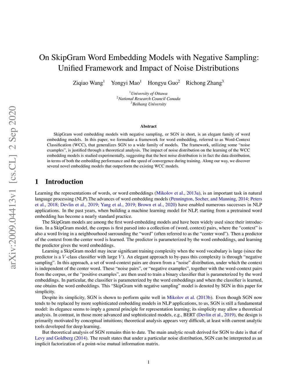 SkipGram word embedding models with negative sampling, or SGN in short, is an elegant family of word embedding models. In this paper, we formulate a framework for word embedding, referred to as Word-Context Classification (WCC), that generalizes SGN to a wide family of models. The framework, which uses some ``noise examples'', is justified through theoretical analysis. The impact of noise distribution on the learning of the WCC embedding models is studied experimentally, suggesting that the best noise distribution is, in fact, the data distribution, in terms of both the embedding performance and the speed of convergence during training. Along our way, we discover several novel embedding models that outperform existing WCC models.