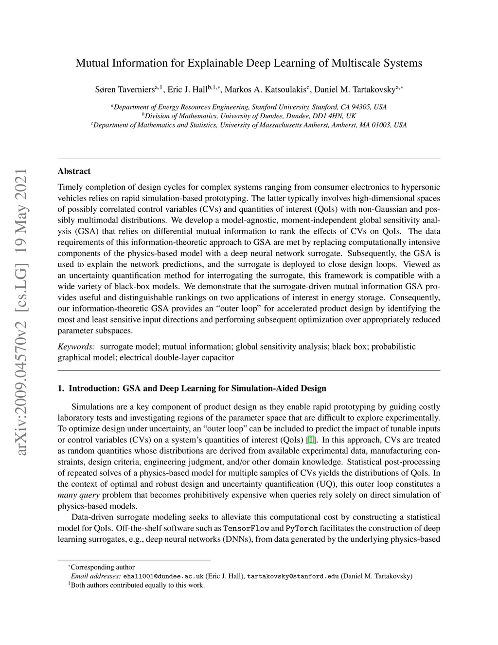 Mutual Information for Explainable Deep Learning of Multiscale Systems