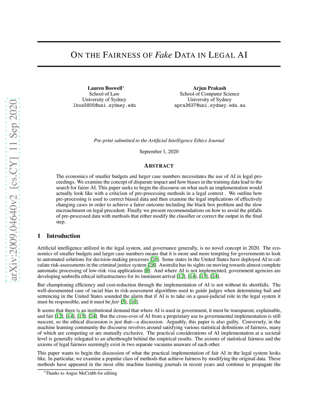 The economics of smaller budgets and larger case numbers necessitates the use of AI in legal proceedings. We examine the concept of disparate impact and how biases in the training data lead to the search for fairer AI. This paper seeks to begin the discourse on what such an implementation would actually look like with a criticism of pre-processing methods in a legal context . We outline how pre-processing is used to correct biased data and then examine the legal implications of effectively changing cases in order to achieve a fairer outcome including the black box problem and the slow encroachment on legal precedent. Finally we present recommendations on how to avoid the pitfalls of pre-processed data with methods that either modify the classifier or correct the output in the final step.