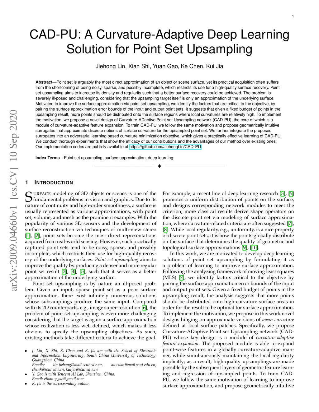 CAD-PU: A Curvature-Adaptive Deep Learning Solution for Point Set