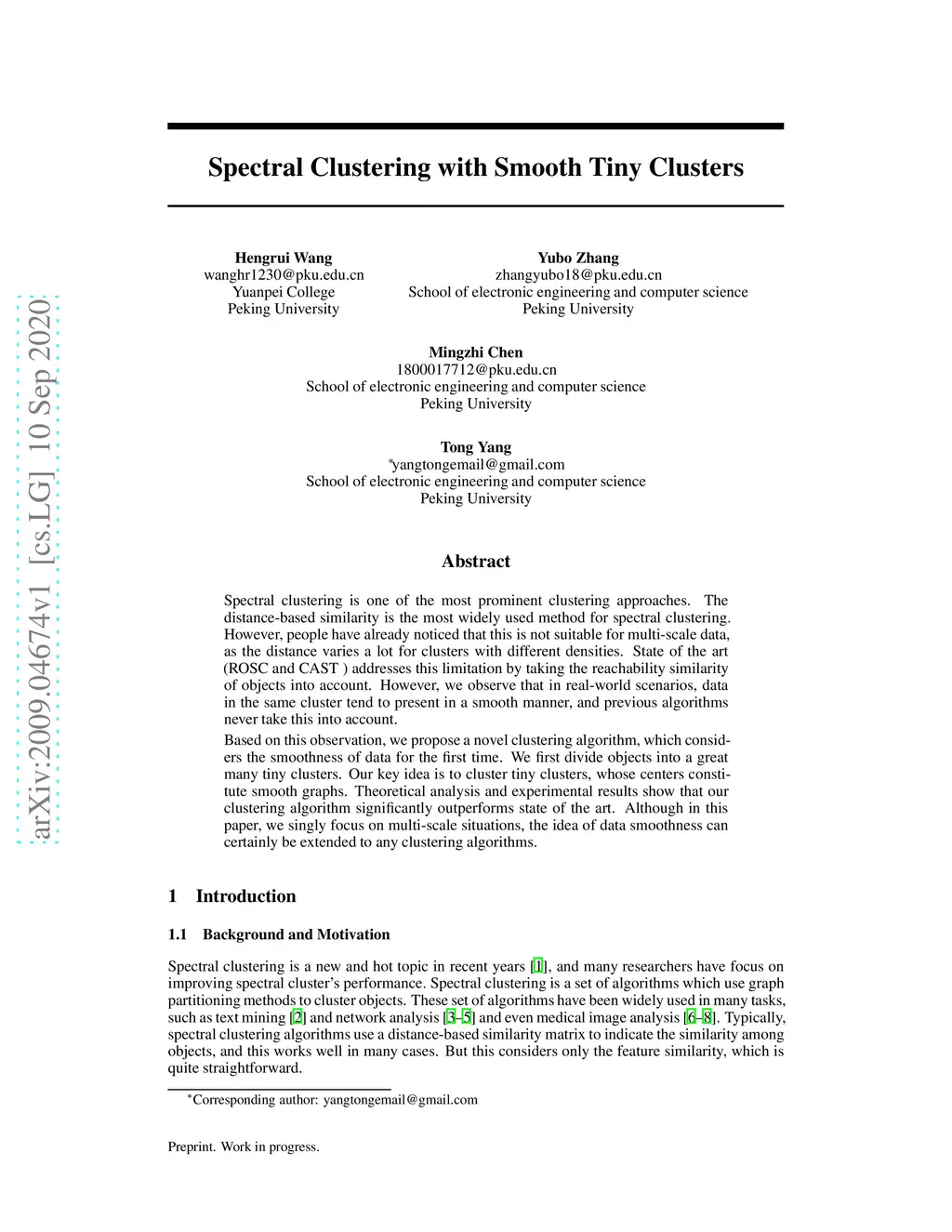 Spectral clustering is one of the most prominent clustering approaches. The distance-based similarity is the most widely used method for spectral clustering. However, people have already noticed that this is not suitable for multi-scale data, as the distance varies a lot for clusters with different densities. State of the art(ROSC and CAST ) addresses this limitation by taking the reachability similarity of objects into account. However, we observe that in real-world scenarios, data in the same cluster tend to present in a smooth manner, and previous algorithms never take this into account. Based on this observation, we propose a novel clustering algorithm, which con-siders the smoothness of data for the first time. We first divide objects into a great many tiny clusters. Our key idea is to cluster tiny clusters, whose centers constitute smooth graphs. Theoretical analysis and experimental results show that our clustering algorithm significantly outperforms state of the art. Although in this paper, we singly focus on multi-scale situations, the idea of data smoothness can certainly be extended to any clustering algorithms