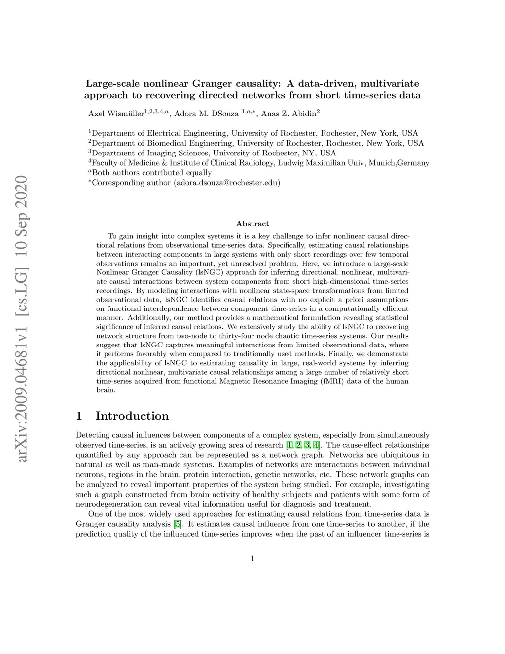 To gain insight into complex systems it is a key challenge to infer nonlinear causal directional relations from observational time-series data. Specifically, estimating causal relationships between interacting components in large systems with only short recordings over few temporal observations remains an important, yet unresolved problem. Here, we introduce a large-scale Nonlinear Granger Causality (lsNGC) approach for inferring directional, nonlinear, multivariate causal interactions between system components from short high-dimensional time-series recordings. By modeling interactions with nonlinear state-space transformations from limited observational data, lsNGC identifies casual relations with no explicit a priori assumptions on functional interdependence between component time-series in a computationally efficient manner. Additionally, our method provides a mathematical formulation revealing statistical significance of inferred causal relations. We extensively study the ability of lsNGC to recovering network structure from two-node to thirty-four node chaotic time-series systems. Our results suggest that lsNGC captures meaningful interactions from limited observational data, where it performs favorably when compared to traditionally used methods. Finally, we demonstrate the applicability of lsNGC to estimating causality in large, real-world systems by inferring directional nonlinear, multivariate causal relationships among a large number of relatively short time-series acquired from functional Magnetic Resonance Imaging (fMRI) data of the human brain.