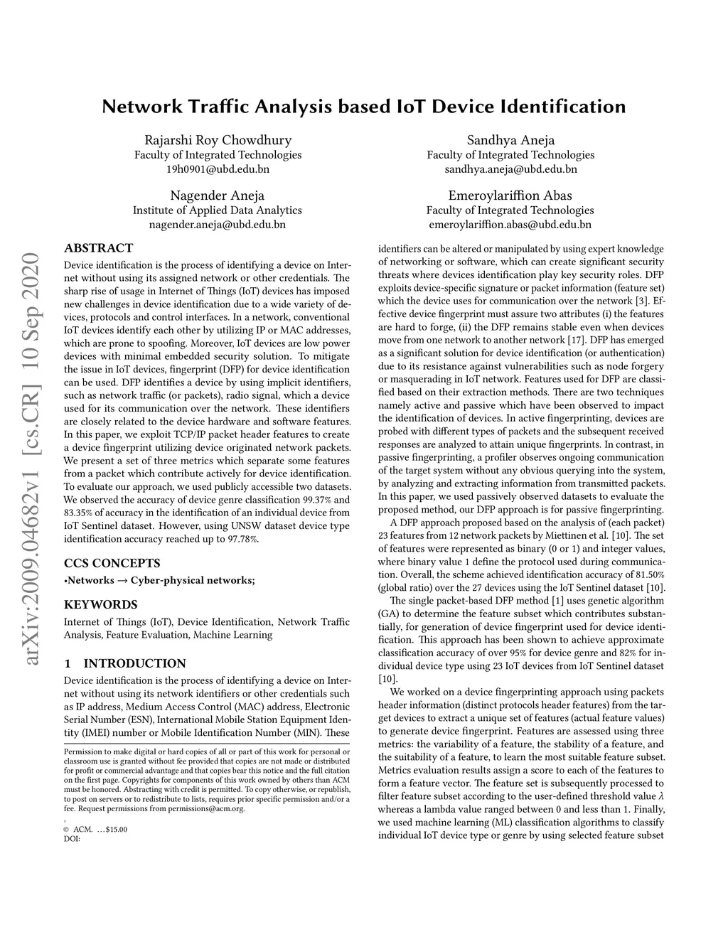 Network Traffic Analysis based IoT Device Identification