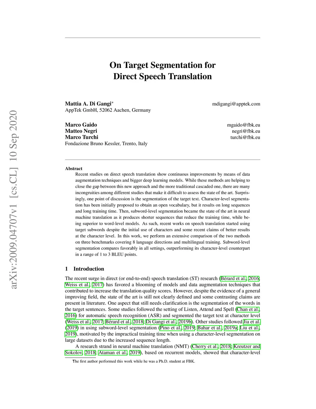 Recent studies on direct speech translation show continuous improvements by means of data augmentation techniques and bigger deep learning models. While these methods are helping to close the gap between this new approach and the more traditional cascaded one, there are many incongruities among different studies that make it difficult to assess the state of the art. Surprisingly, one point of discussion is the segmentation of the target text. Character-level segmentation has been initially proposed to obtain an open vocabulary, but it results on long sequences and long training time. Then, subword-level segmentation became the state of the art in neural machine translation as it produces shorter sequences that reduce the training time, while being superior to word-level models. As such, recent works on speech translation started using target subwords despite the initial use of characters and some recent claims of better results at the character level. In this work, we perform an extensive comparison of the two methods on three benchmarks covering 8 language directions and multilingual training. Subword-level segmentation compares favorably in all settings, outperforming its character-level counterpart in a range of 1 to 3 BLEU points.