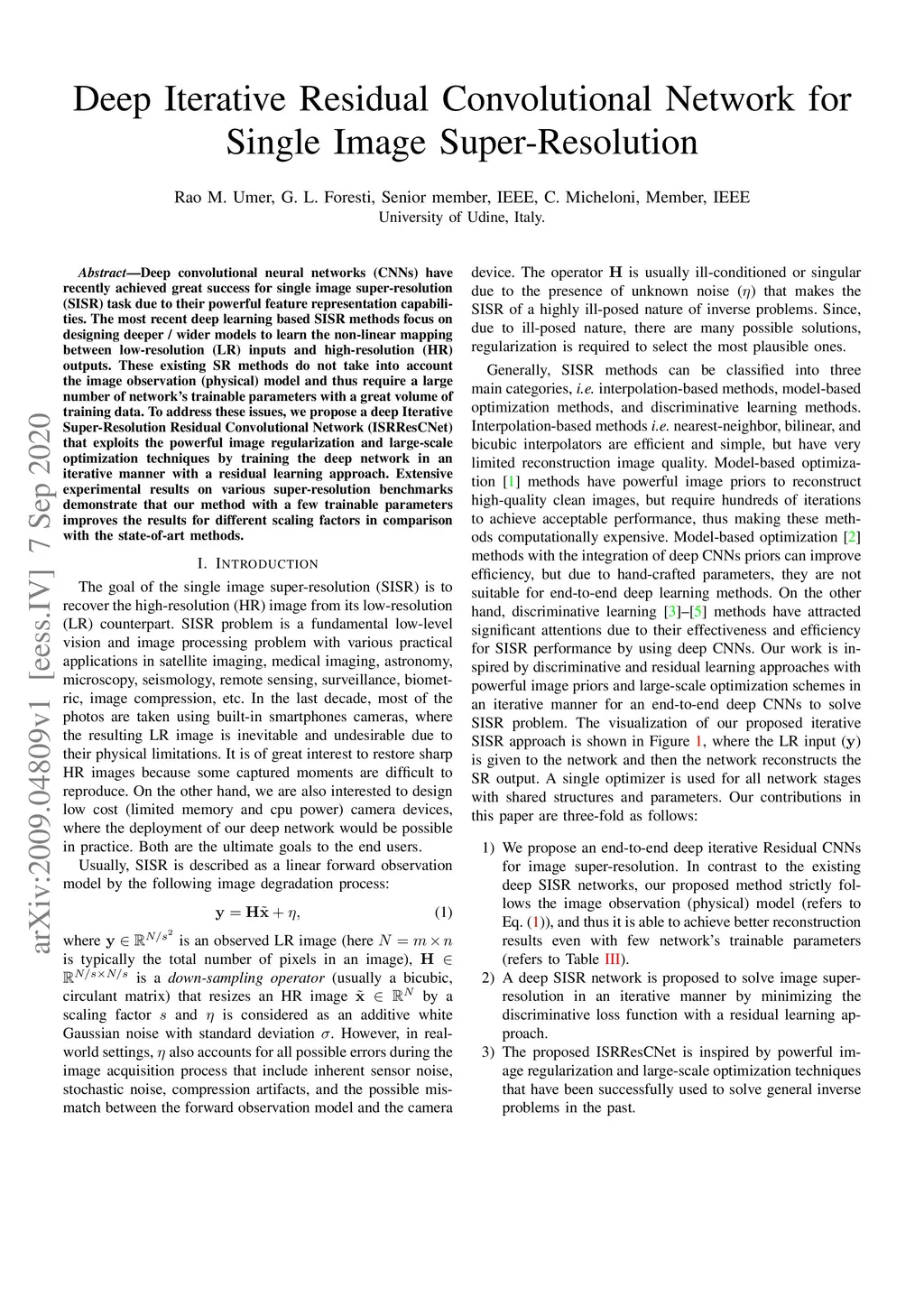 Deep Iterative Residual Convolutional Network for Single Image