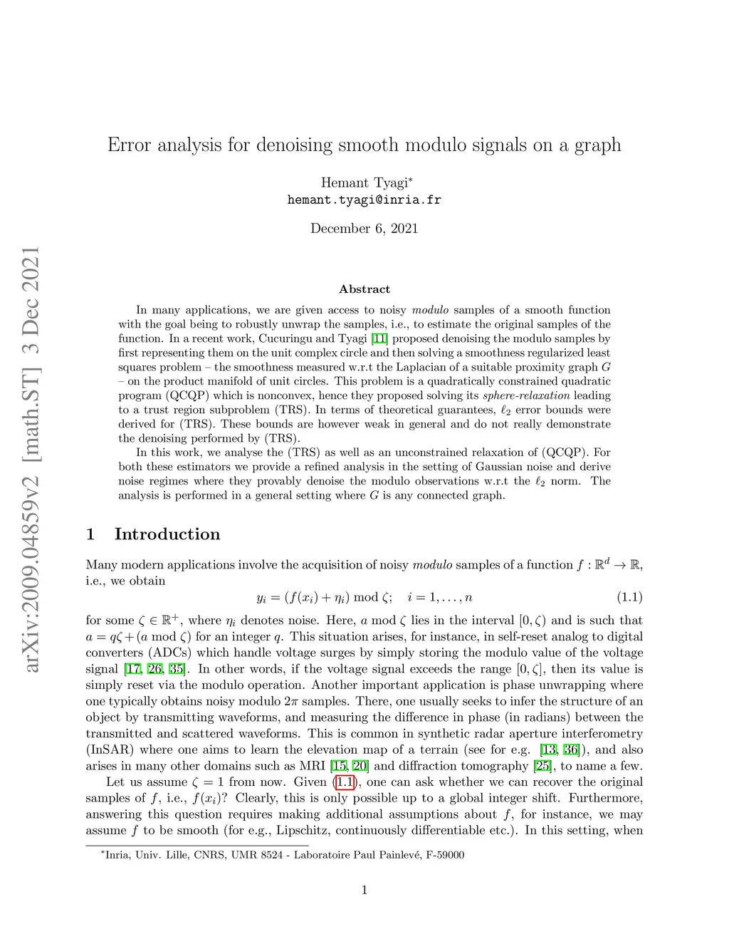 In many applications, we are given access to noisy modulo samples of a smooth function with the goal being to robustly unwrap the samples, i.e., to estimate the original samples of the function. In a recent work, Cucuringu and Tyagi proposed denoising the modulo samples by first representing them on the unit complex circle and then solving a smoothness regularized least squares problem -- the smoothness measured w.r.t the Laplacian of a suitable proximity graph -- on the product manifold of unit circles. This problem is a quadratically constrained quadratic program (QCQP) which is nonconvex, hence they proposed solving its sphere-relaxation leading to a trust region subproblem (TRS). In terms of theoretical guarantees, error bounds were derived for (TRS). These bounds are however weak in general and do not really demonstrate the denoising performed by (TRS). In this work, we analyse the (TRS) as well as an unconstrained relaxation of (QCQP). For both these estimators we provide a refined analysis in the setting of Gaussian noise and derive noise regimes where they provably denoise the modulo observations w.r.t the norm. The analysis is performed in a general setting where is any connected graph.