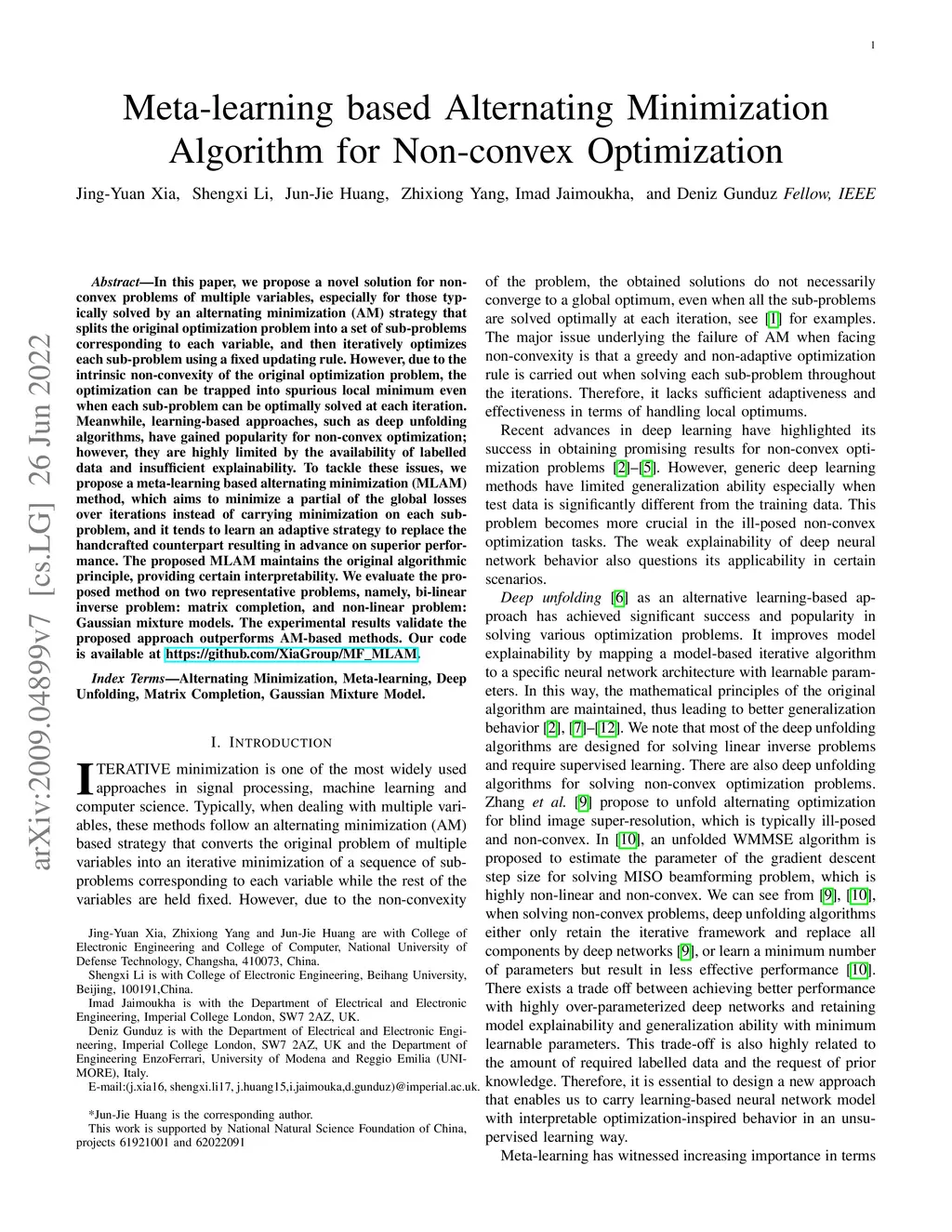Meta-learning based Alternating Minimization Algorithm for Non-convex