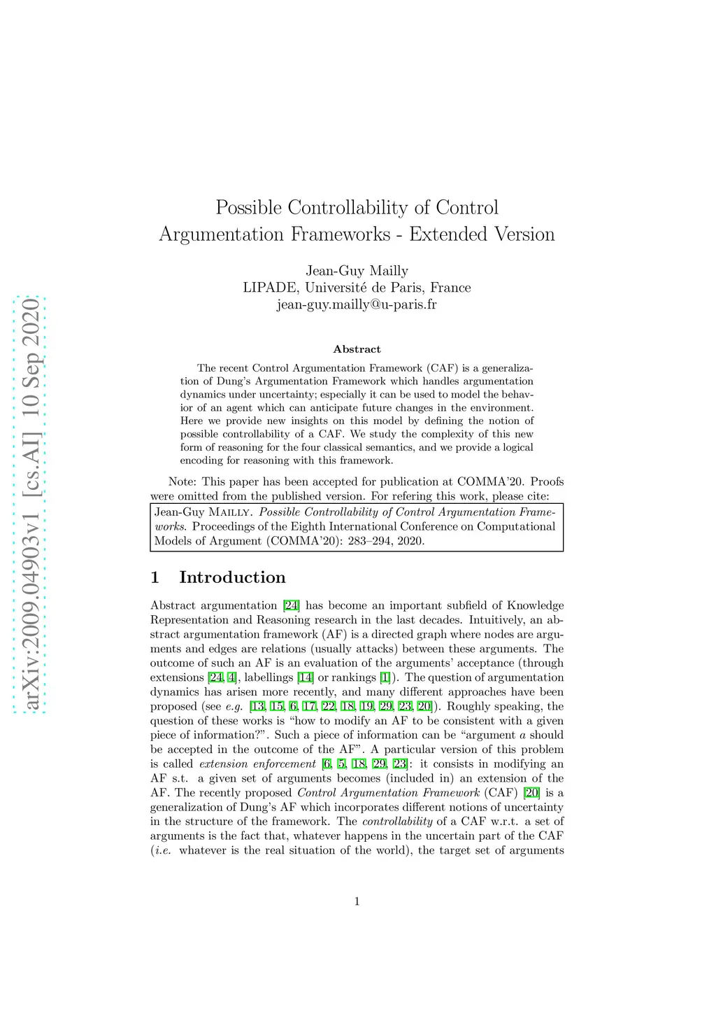 Possible Controllability of Control Argumentation Frameworks -- Extended