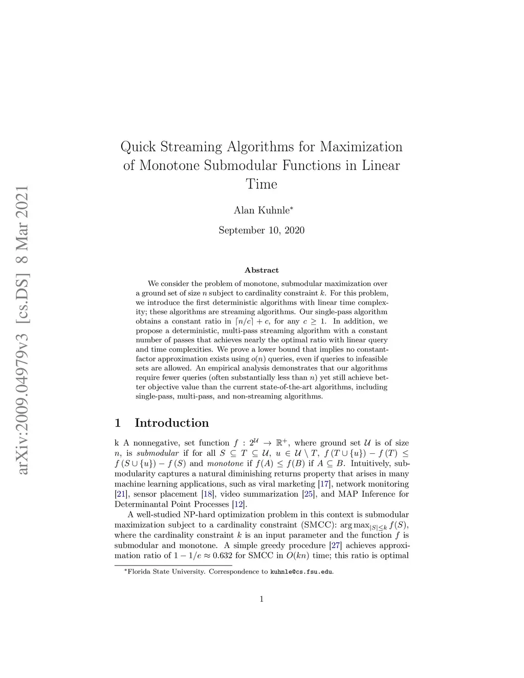Quick Streaming Algorithms for Maximization of Monotone Submodular
