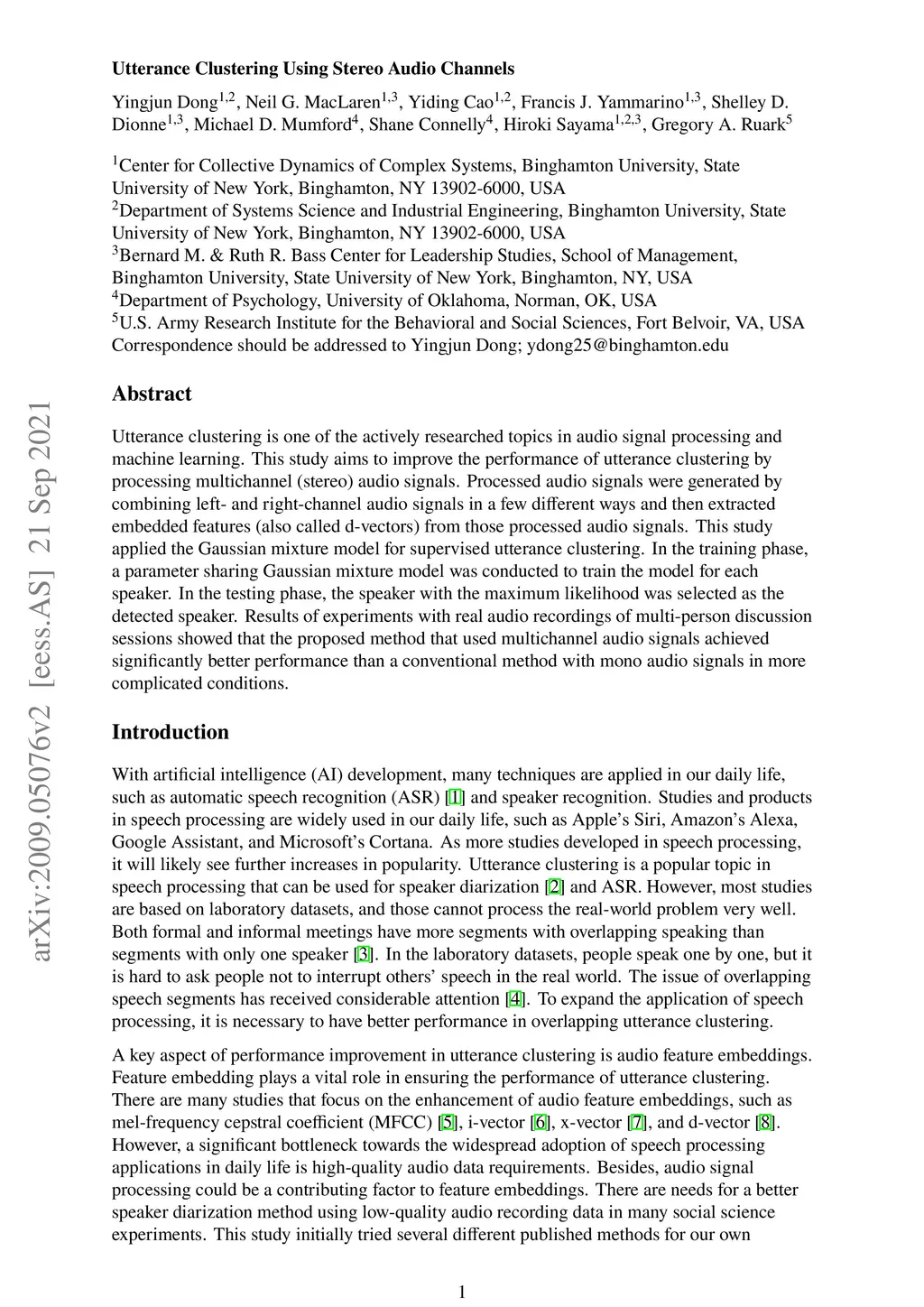 Utterance Clustering Using Stereo Audio Channels