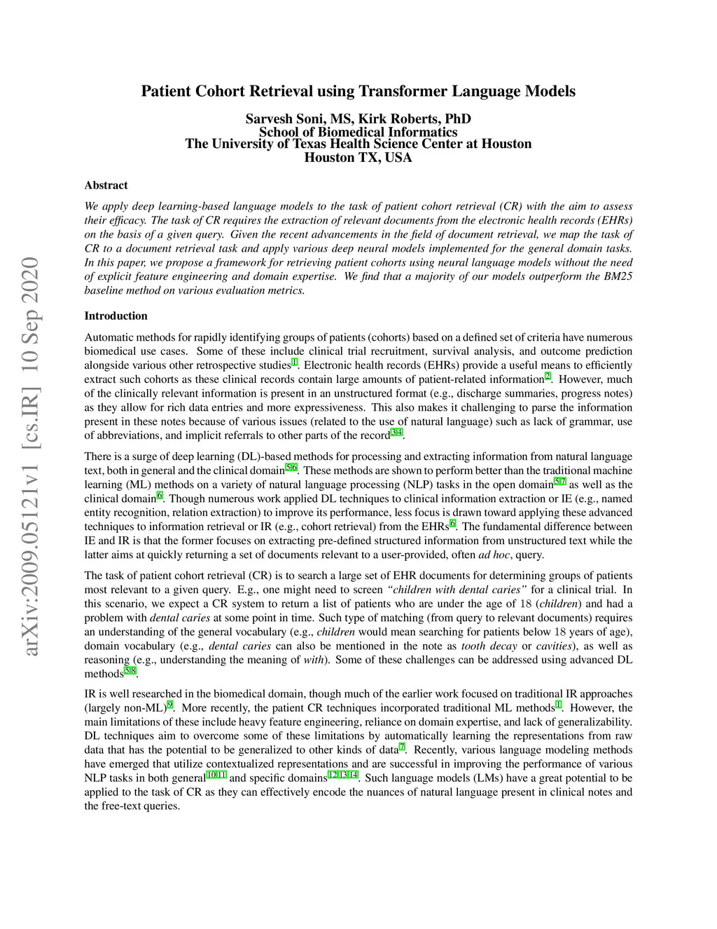 Patient Cohort Retrieval using Transformer Language Models