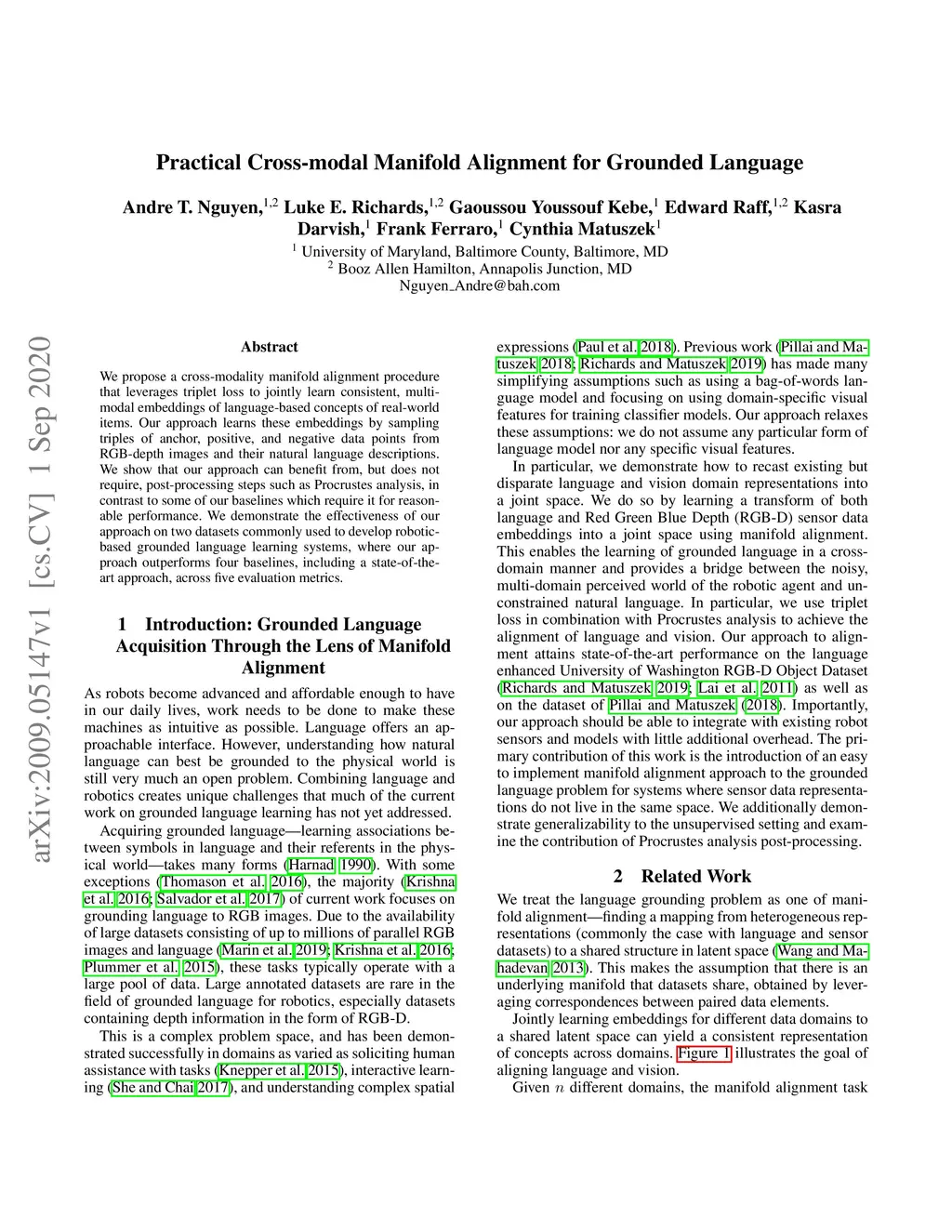 Practical Cross-modal Manifold Alignment for Grounded Language