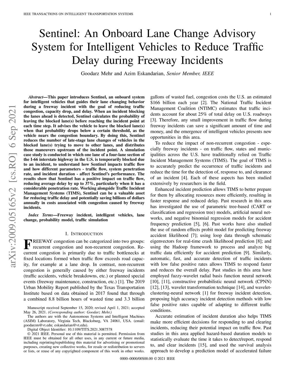 This paper introduces Sentinel, an onboard system for intelligent vehicles that guides their lane changing behavior during a freeway incident with the goal of reducing traffic congestion, capacity drop, and delay. When an incident blocking the lanes ahead is detected, Sentinel calculates the probability of leaving the blocked lane(s) before reaching the incident point at each time step. It advises the vehicle to leave the blocked lane(s) when that probability drops below a certain threshold, as the vehicle nears the congestion boundary. By doing this, Sentinel reduces the number of late-stage lane changes of vehicles in the blocked lane(s) trying to move to other lanes, and distributes those maneuvers upstream of the incident point. A simulation case study is conducted in which one lane of a four-lane section of the I-66 interstate highway in the U.S. is temporarily blocked due to an incident, to understand how Sentinel impacts traffic flow and how different parameters - traffic flow, system penetration rate, and incident duration - affect Sentinel's performance. The results show that Sentinel has a positive impact on traffic flow, reducing average delay by up to 37%, particularly when it has a considerable penetration rate. Working alongside Traffic Incident Management Systems (TIMS), Sentinel can be a valuable asset for reducing traffic delay and potentially saving billions of dollars annually in costs associated with congestion caused by freeway incidents.