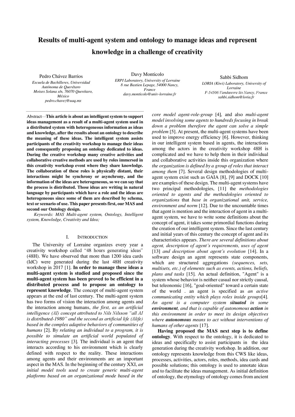 Results of multi-agent system and ontology to manage ideas and represent