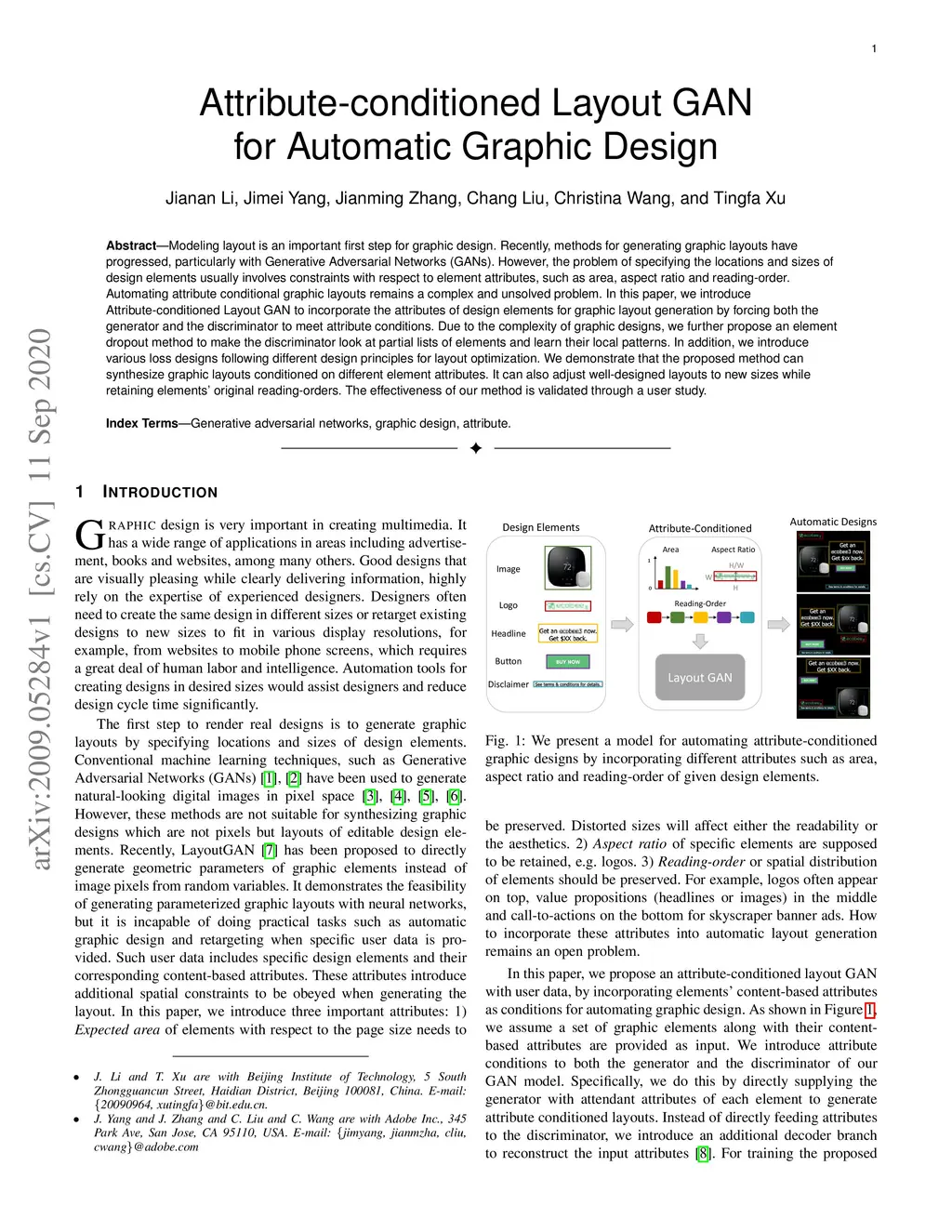 Attribute-conditioned Layout GAN for Automatic Graphic Design