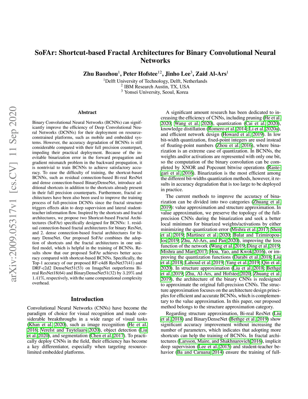 SoFAr: Shortcut-based Fractal Architectures for Binary Convolutional