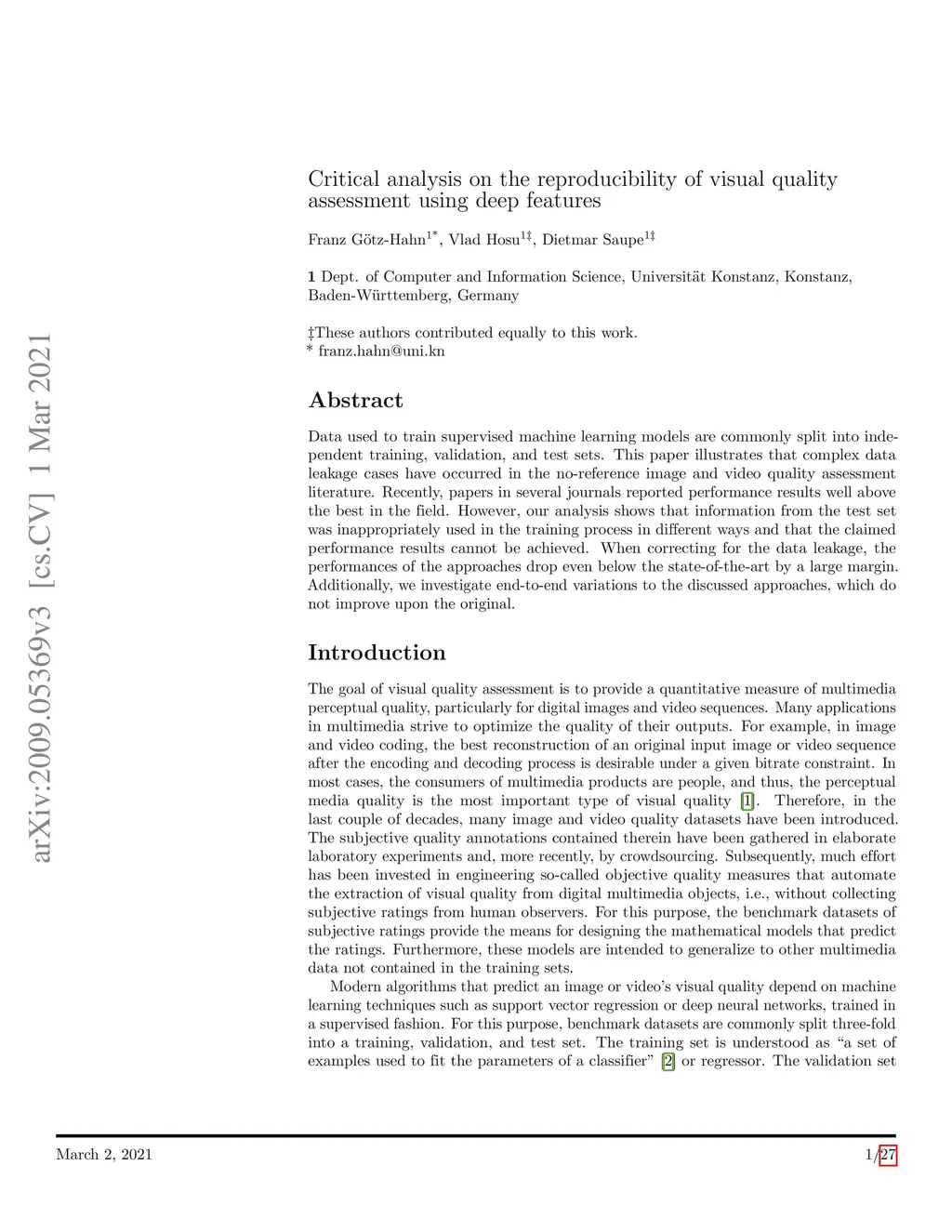 Data used to train supervised machine learning models are commonly split into independent training, validation, and test sets. This paper illustrates that complex data leakage cases have occurred in the no-reference image and video quality assessment literature. Recently, papers in several journals reported performance results well above the best in the field. However, our analysis shows that information from the test set was inappropriately used in the training process in different ways and that the claimed performance results cannot be achieved. When correcting for the data leakage, the performances of the approaches drop even below the state-of-the-art by a large margin. Additionally, we investigate end-to-end variations to the discussed approaches, which do not improve upon the original.