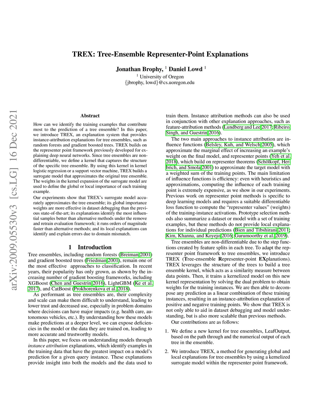 TREX: Tree-Ensemble Representer-Point Explanations