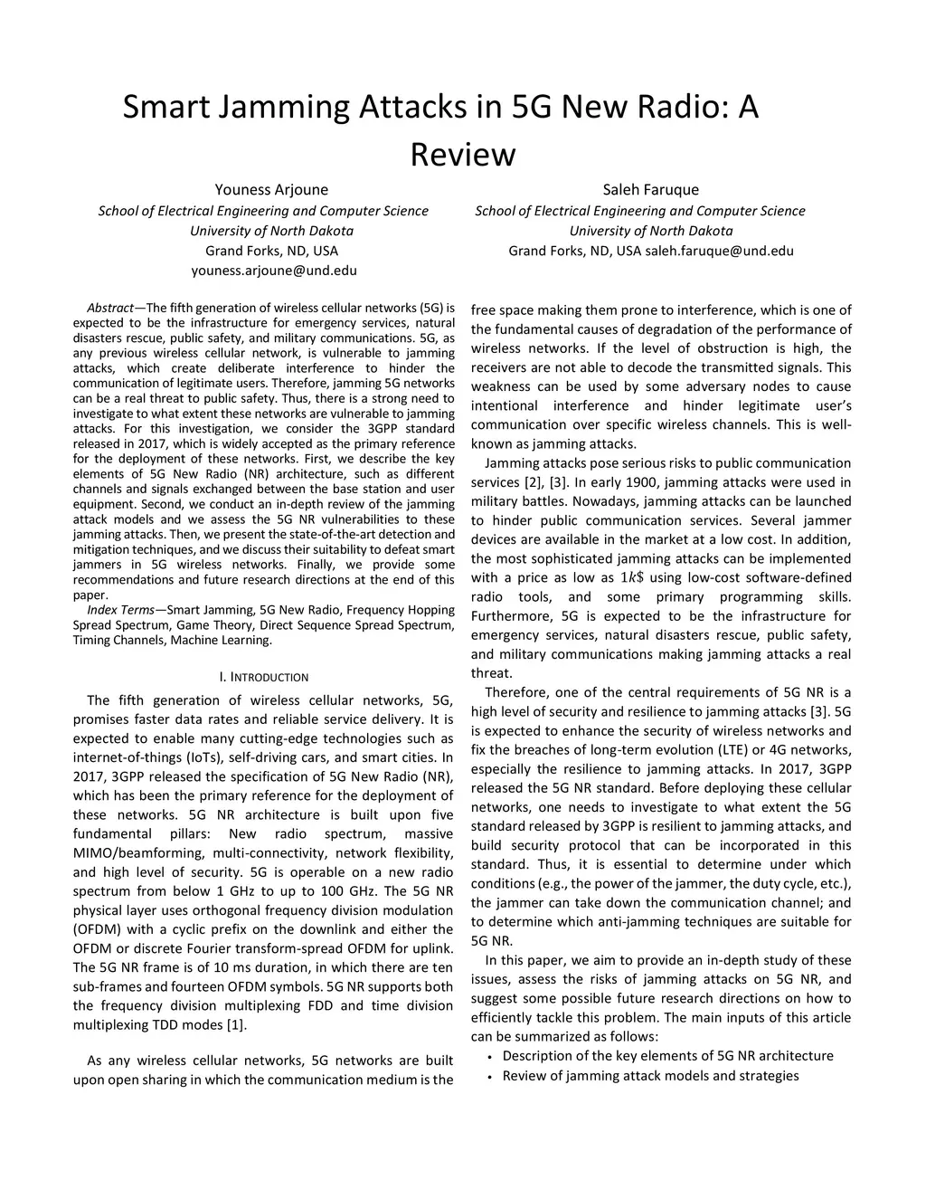 The fifth generation of wireless cellular networks (5G) is expected to be the infrastructure for emergency services, natural disasters rescue, public safety, and military communications. 5G, as any previous wireless cellular network, is vulnerable to jamming attacks, which create deliberate interference to hinder the communication of legitimate users. Therefore, jamming 5G networks can be a real threat to public safety. Thus, there is a strong need to investigate to what extent these networks are vulnerable to jamming attacks. For this investigation, we consider the 3GPP standard released in 2017, which is widely accepted as the primary reference for the deployment of these networks. First, we describe the key elements of 5G New Radio (NR) architecture, such as different channels and signals exchanged between the base station and user equipment. Second, we conduct an in-depth review of the jamming attack models and we assess the 5G NR vulnerabilities to these jamming attacks. Then, we present the state-of-the-art detection and mitigation techniques, and we discuss their suitability to defeat smart jammers in 5G wireless networks. Finally, we provide some recommendations and future research directions at the end of this paper.