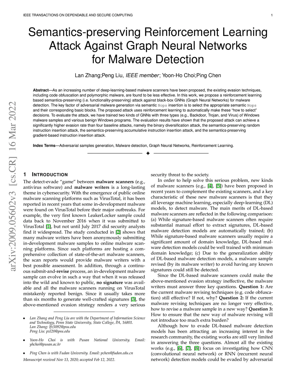 To address the costs of reverse engineering and signature extraction, advanced research on malware detection focuses on using neural networks to learn malicious behaviors with static and dynamic features. However, deep learning-based malware detection models are vulnerable to a hack from adversarial samples. The attackers' goal is to generate imperceptible perturbations to the original samples and evade detection. In the context of malware, the generated samples should have one more important character: it should not change the malicious behaviors of the original code. So the original features can not be removed and changed. In this paper, we proposed a reinforcement learning based attack to deceive graph based malware detection models. Inspired by obfuscation techniques, the central idea of the proposed attack is to sequentially inject semantic Nops, which will not change the program's functionality, into CFGs(Control Flow Graph). Specifically, the Semantics-preserving Reinforcement Learning(SRL) Attack is to learn an RL agent to iteratively select the semantic Nops and insert them into basic blocks of the CFGs. Variants of obfuscation methods, hill-climbing methods, and gradient based algorithms are proposed: 1) Semantics-preserving Random Insertion(SRI) Attack: randomly inserting semantic Nops into basic blocks.; 2) Semantics-preserving Accumulated Insertion(SAI) Attack: declining certain random transformation according to the probability of the target class; 3) Semantics-preserving Gradient based Insertion(SGI) Attack: applying transformation on the original CFG in the direction of the gradient. We use real-world Windows programs to show that a family of Graph Neural Network models are vulnerable to these attacks. The best evasion rate of the benchmark attacks are 97% on the basic GCN model and 96% on DGCNN model. The SRL attack can achieve 100% on both models.