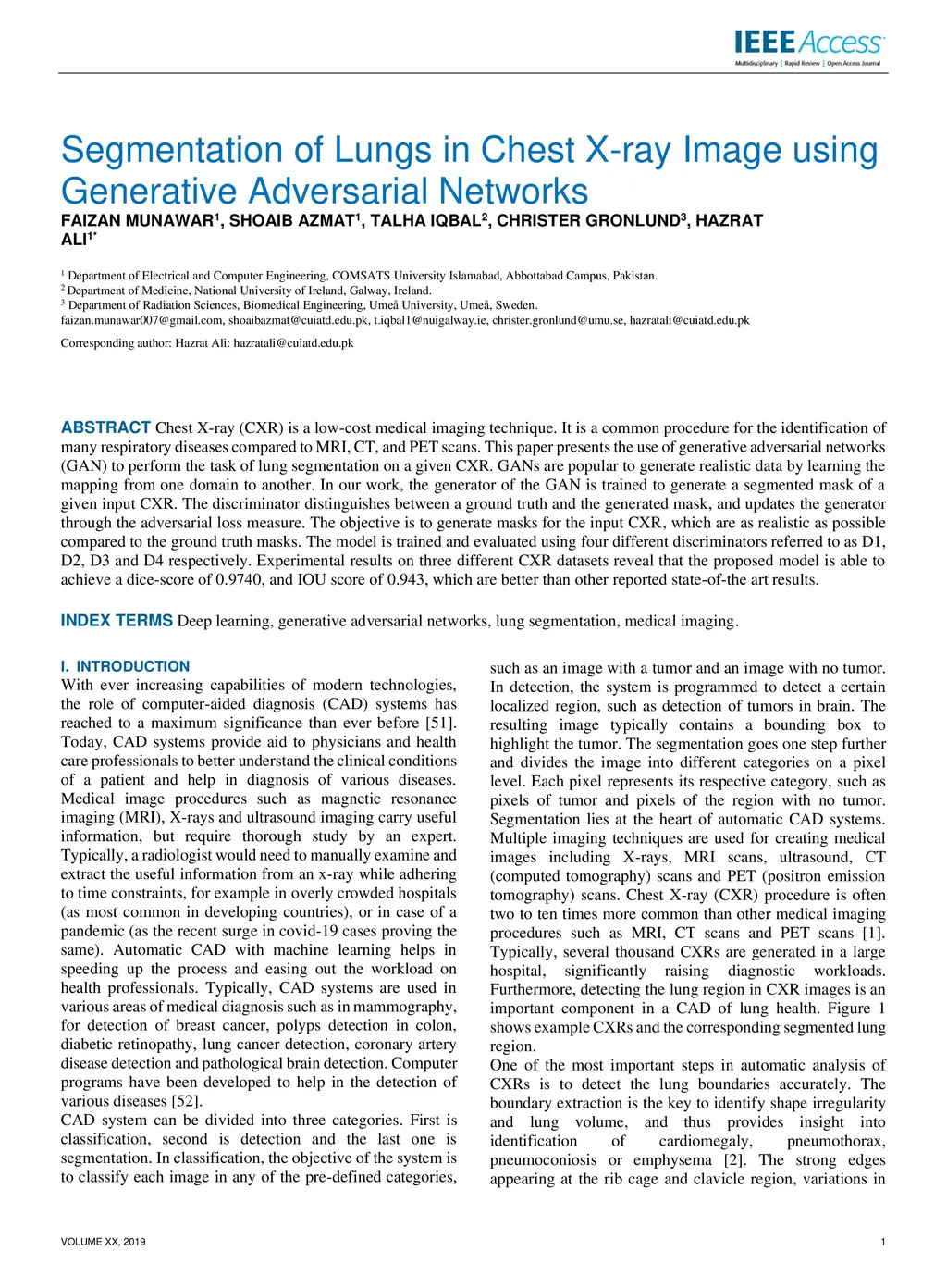 Segmentation of Lungs in Chest X-Ray Image Using Generative Adversarial