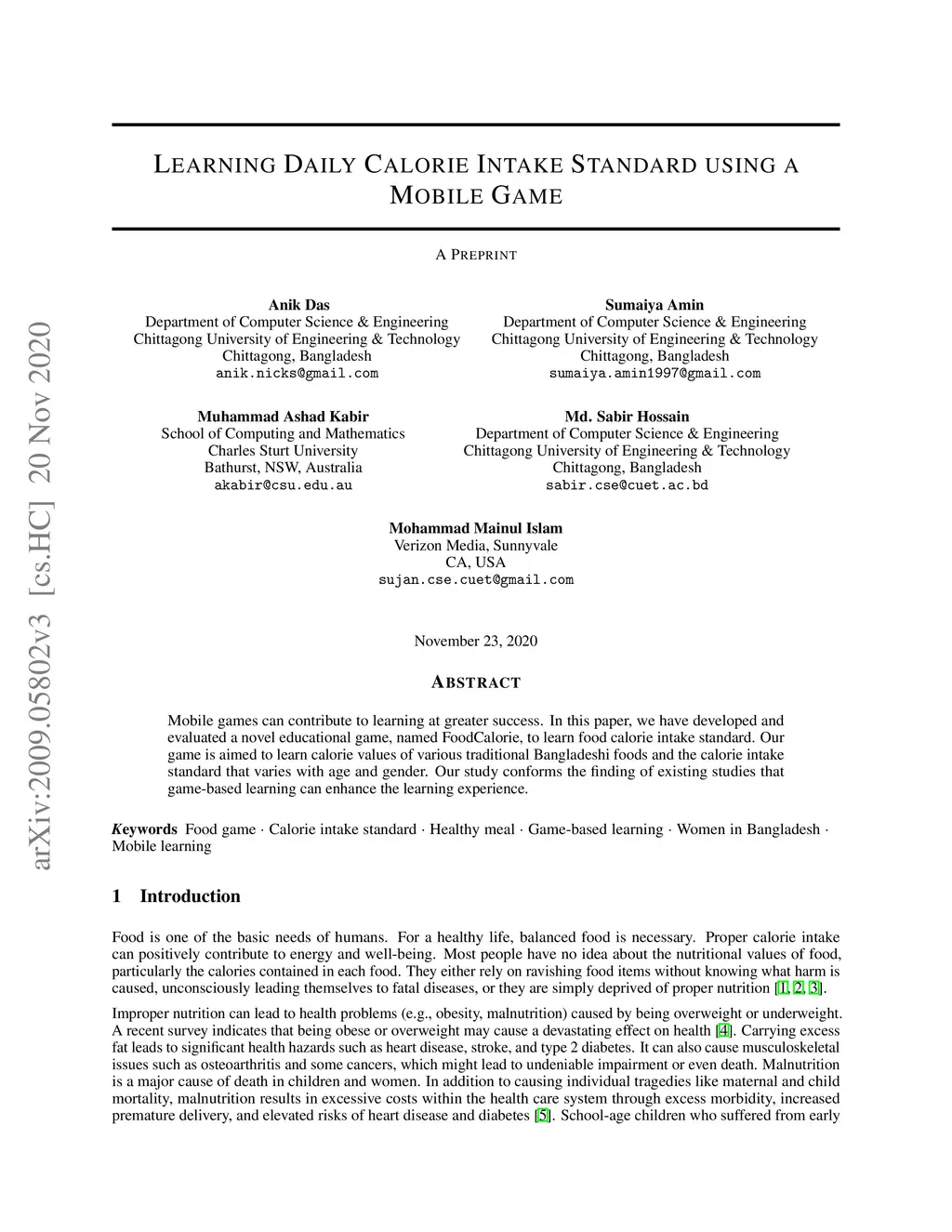 Learning Daily Calorie Intake Standard using a Mobile Game