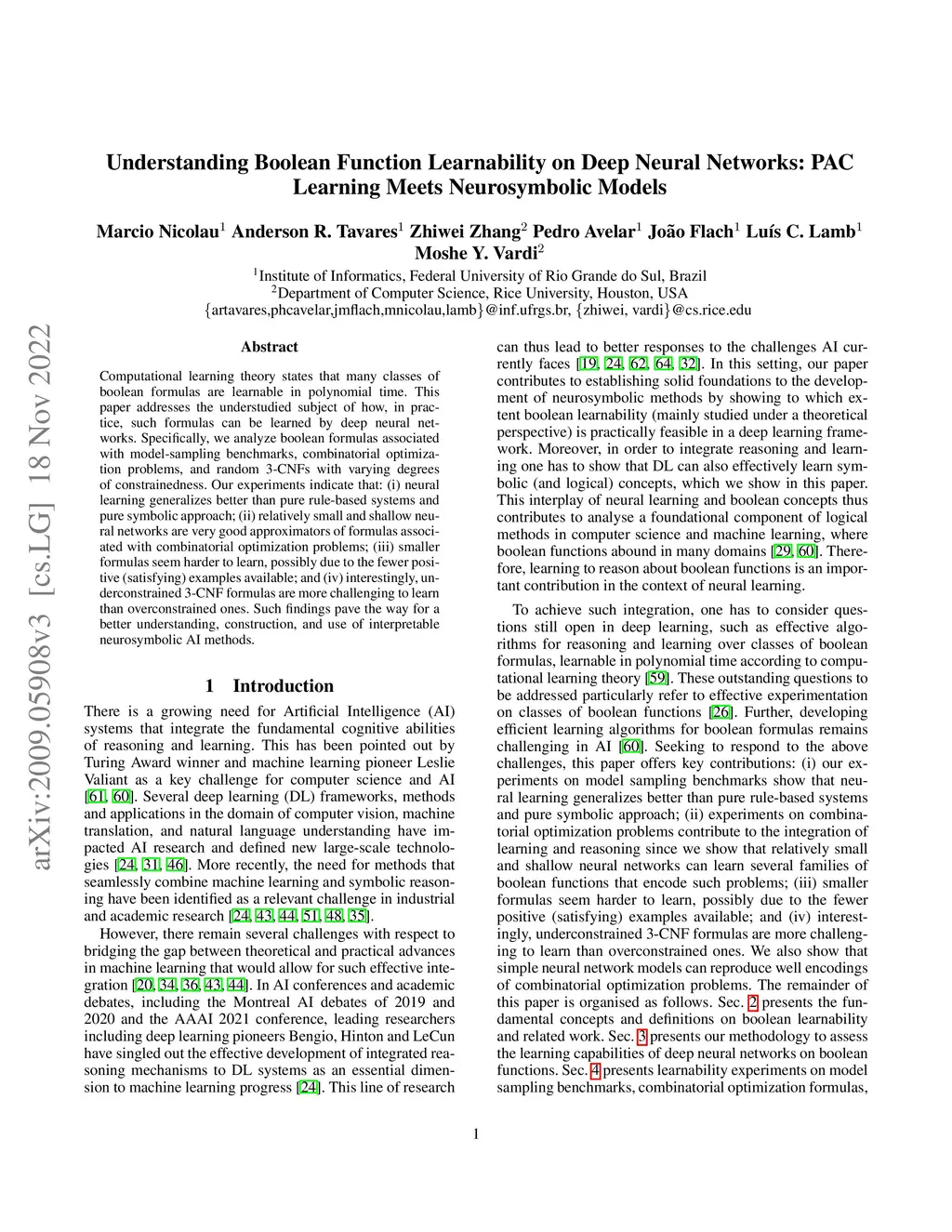 Computational learning theory states that many classes of boolean formulas are learnable in polynomial time. This paper addresses the understudied subject of how, in practice, such formulas can be learned by deep neural networks. Specifically, we analyze boolean formulas associated with model-sampling benchmarks, combinatorial optimization problems, and random 3-CNFs with varying degrees of constrainedness. Our experiments indicate that: (i) neural learning generalizes better than pure rule-based systems and pure symbolic approach; (ii) relatively small and shallow neural networks are very good approximators of formulas associated with combinatorial optimization problems; (iii) smaller formulas seem harder to learn, possibly due to the fewer positive (satisfying) examples available; and (iv) interestingly, underconstrained 3-CNF formulas are more challenging to learn than overconstrained ones. Such findings pave the way for a better understanding, construction, and use of interpretable neurosymbolic AI methods.