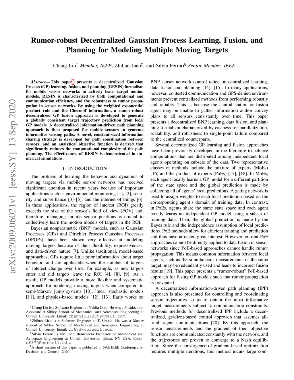 This paper presents a decentralized Gaussian Process (GP) learning, fusion, and planning (RESIN) formalism for mobile sensor networks to actively learn target motion models. RESIN is characterized by both computational and communication efficiency, and the robustness to rumor propagation in sensor networks. By using the weighted exponential product rule and the Chernoff information, a rumor-robust decentralized GP fusion approach is developed to generate a globally consistent target trajectory prediction from local GP models. A decentralized information-driven path planning approach is then proposed for mobile sensors to generate informative sensing paths. A novel, constant-sized information sharing strategy is developed for path coordination between sensors, and an analytical objective function is derived that significantly reduces the computational complexity of the path planning. The effectiveness of RESIN is demonstrated in various numerical simulations.